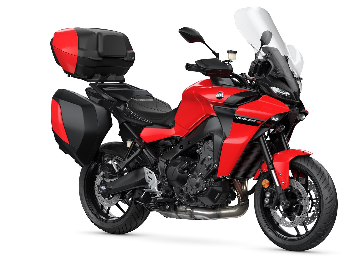 Het TRACER 9 GT+ Travel-pakket bevat de perfecte accessoires om elke lange afstandsrit nog comfortabeler te maken. Het hoge windscherm geeft extra bescherming tegen wind en andere elementen en biedt de berijder een aangename en beschermende positie. De topkoffer en alle bijbehorende accessoires die nodig zijn om hem te monteren zorgen voor een ongelooflijke 45 liter extra opbergruimte waarin je zo nodig twee integraalhelmen kwijt kunt. De koffer kan ook perfect worden afgestemd op de kleur van je TRACER 9 GT+ met een bijpassende afdekplaat.