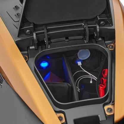 Een ongekend gevoel van vertrouwen voor elke bestuurder op ieder niveau. Vooruit en accelereren via de gashendel op de rechterhandgreep en vaart minderen of achteruit varen via de hendeI op de linkerhandgreep. Zo eenvoudig kan het zijn!