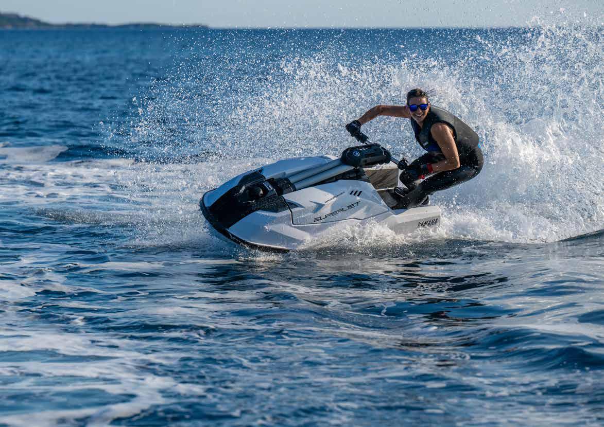 Met zijn pompend driecilinder viertakt motorblok levert de slanke en ultralichte SuperJet een krachtige combinatie van razendsnelle acceleratie op de supersnelle rechte stukken, terwijl je met zijn wendbaarheid, manoeuvreerbaarheid en controle bochten kunt aansnijden als nooit tevoren.