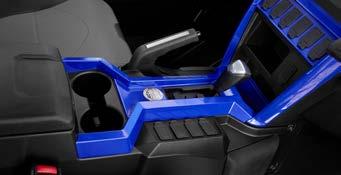 Jazda modelem Wolverine w wersji Limited Edition w warunkach słabego oświetlenia to prawdziwa przyjemność. Jest on wyposażony w oświetlenie podłogi i deski rozdzielczej, dobrze widoczną niebieską diodę LED oświetlającą stacyjkę i panel instrumentów, który sam jest podświetlony na niebiesko. Ten projekt premium sprawia, że wnętrze pojazdu wygląda jak w samochodzie.