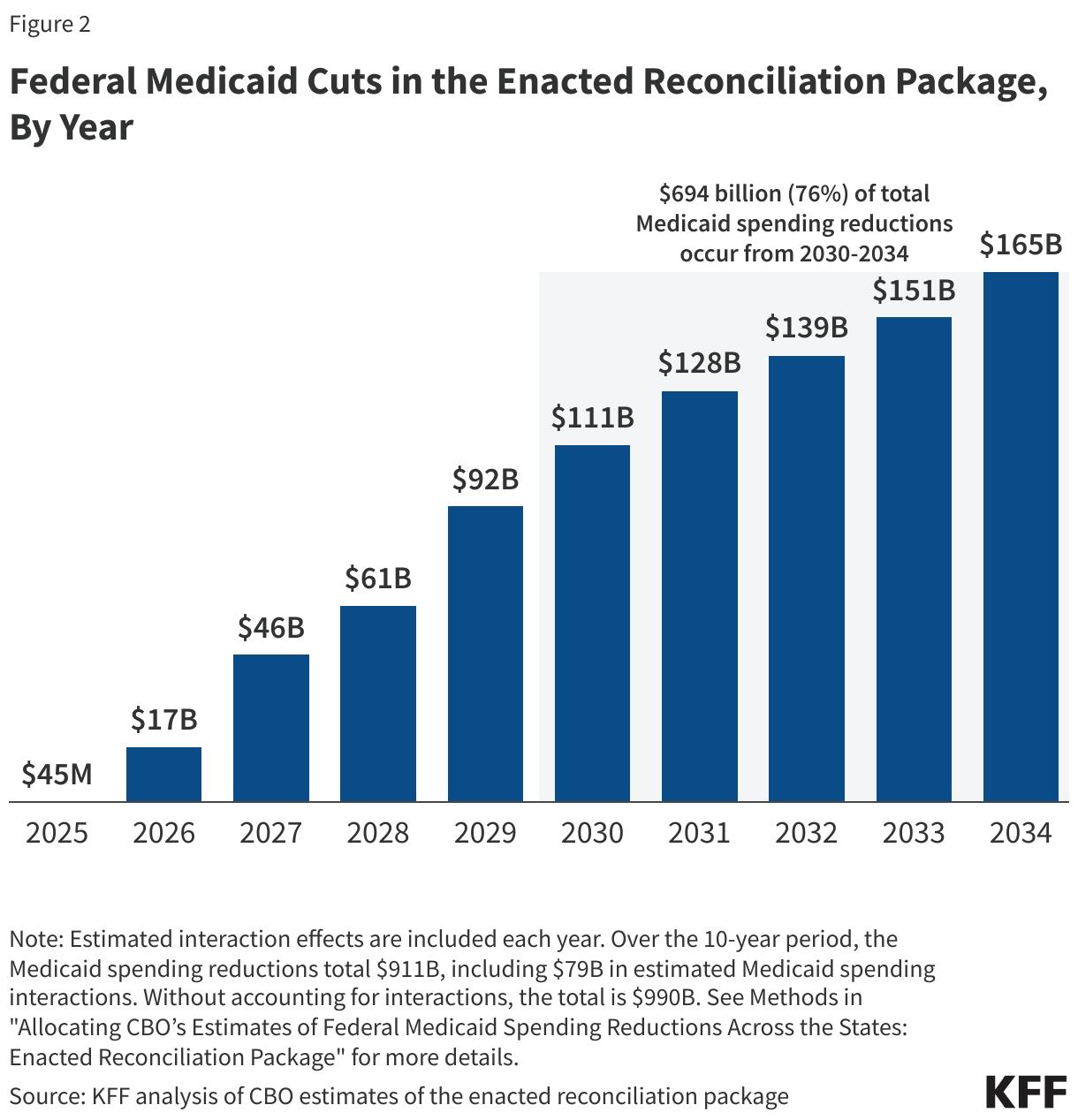Together, these Medicaid changes are projected to reduce federal spending by $990 Billion over 10 years (Euhus, et. al, 2025).
