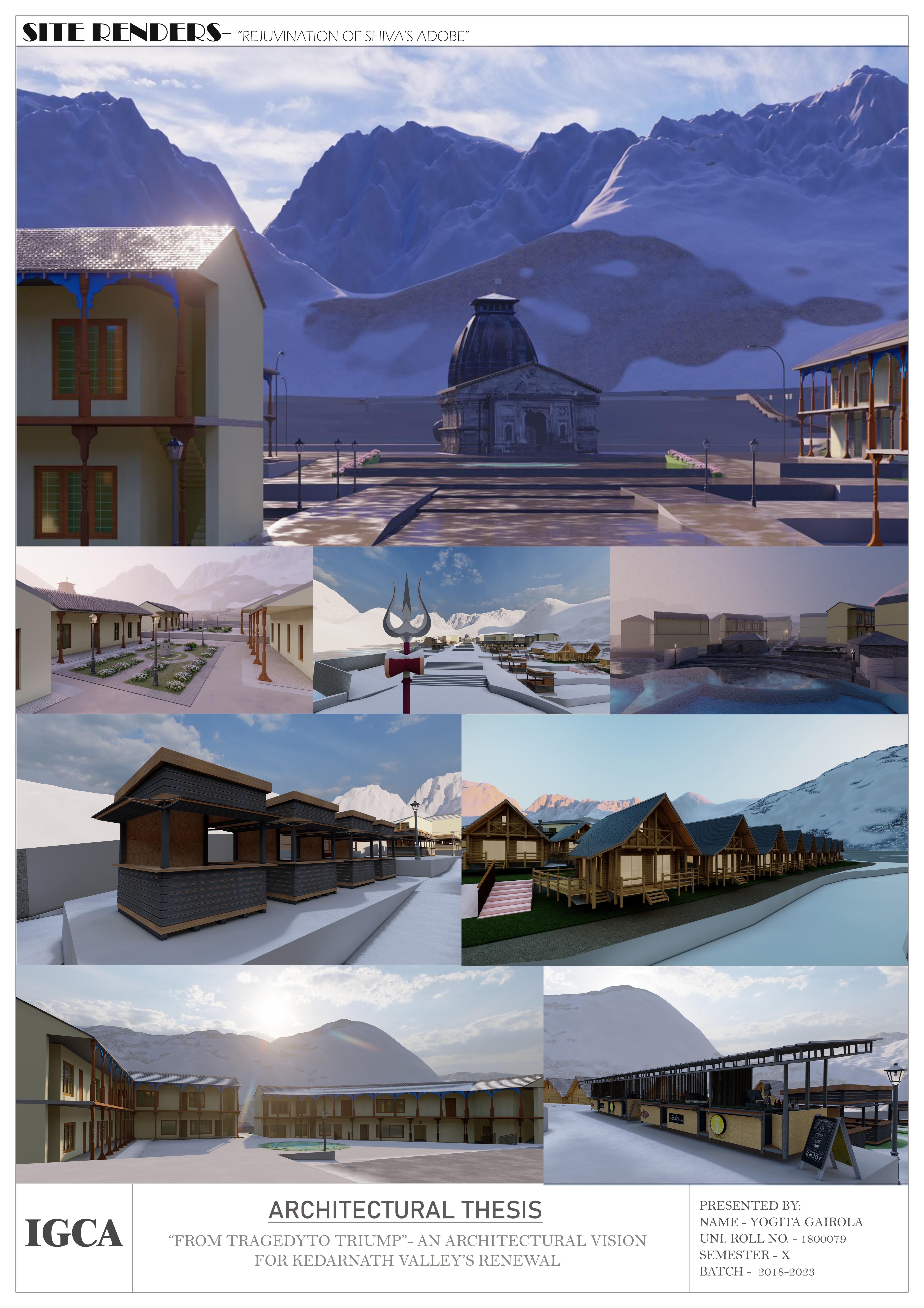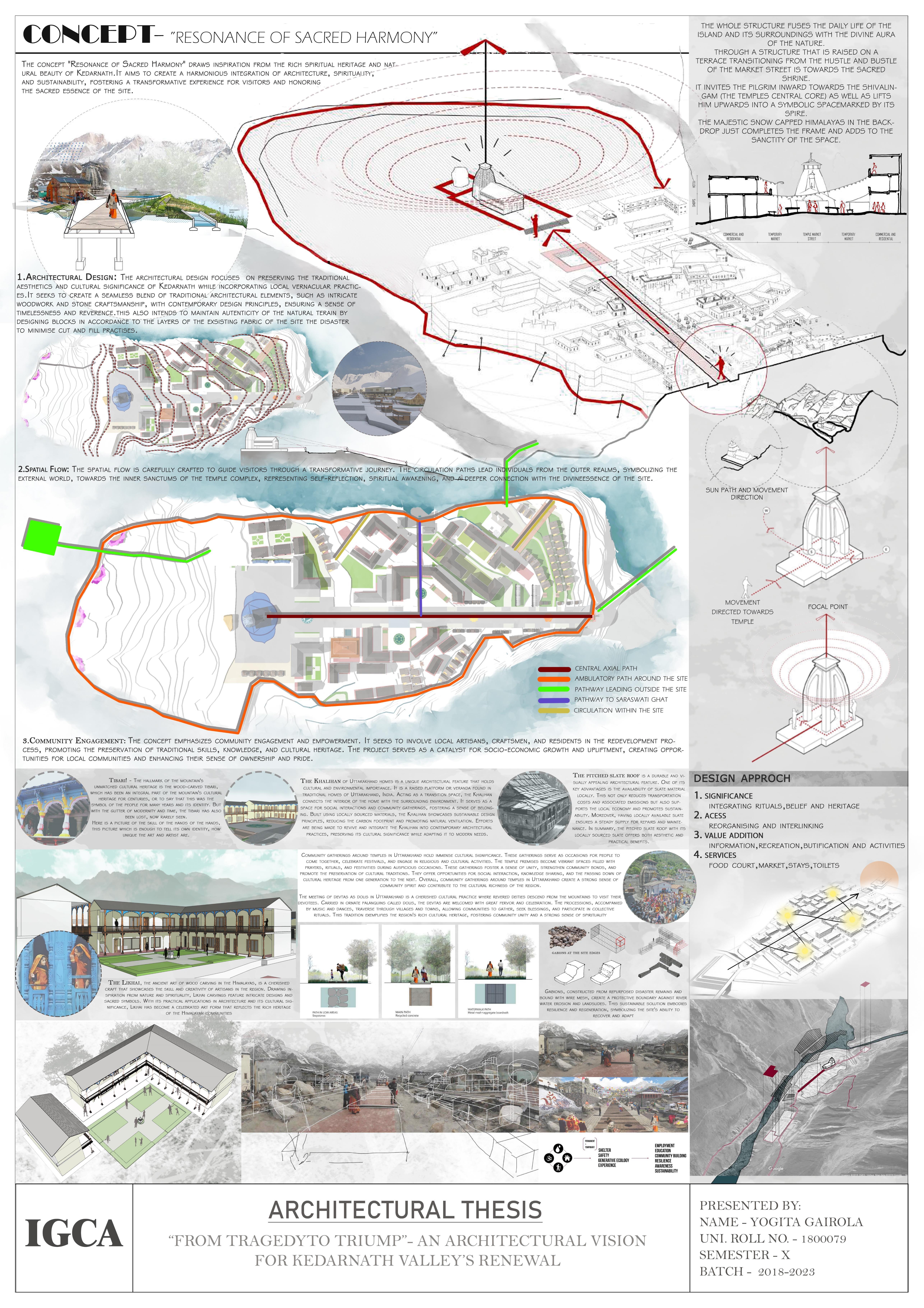 I am thrilled to unveil my architectural thesis, 'Kedarnath Redevelopment,' a research-based exploration that intricately weaves together the threads of heritage and innovation. This project has been a labour of love, delving into the profound challenge of preserving Kedarnath's rich cultural legacy while embracing the demands of a modern and sustainable future. Throughout my journey, I've passionately delved into the essence of this sacred site, aiming to create a harmonious coexistence between tradition and progress. This thesis represents not only a culmination of academic rigour but also a testament to my unwavering commitment to honouring the past while designing for the years ahead. Join me in celebrating this milestone that reflects my deep respect for heritage and my fervour for architectural innovation. #ArchitecturalThesis #KedarnathRedevelopment #HeritageAndInnovation