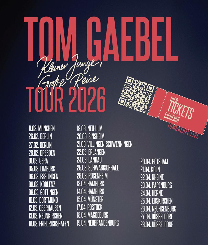 27. + 28.4. Düsseldorf Infos & Tickets: www.tomgaebel.live