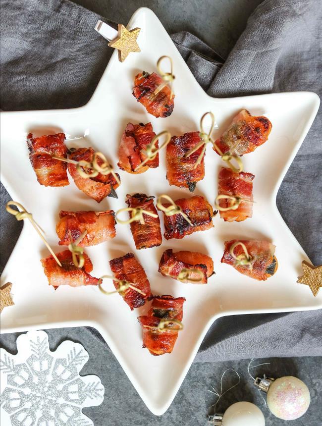 12 slices smoked bacon, cut into half 2 tbsp. maple syrup toothpicks, for serving