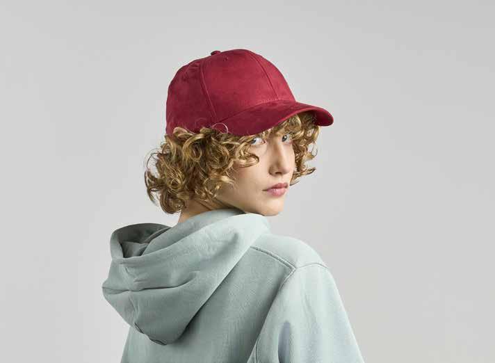 Trucker cap i imitert semsket skinn og 5 paneler. Lett buet brem, medium profil, og er laget nesten utelukkende av resirkulert polyester. Resirkulert snapback-lukking og en resirkulert ReTraze®-visir. Denne modellen vil erstatte M227 Rapper Suede.