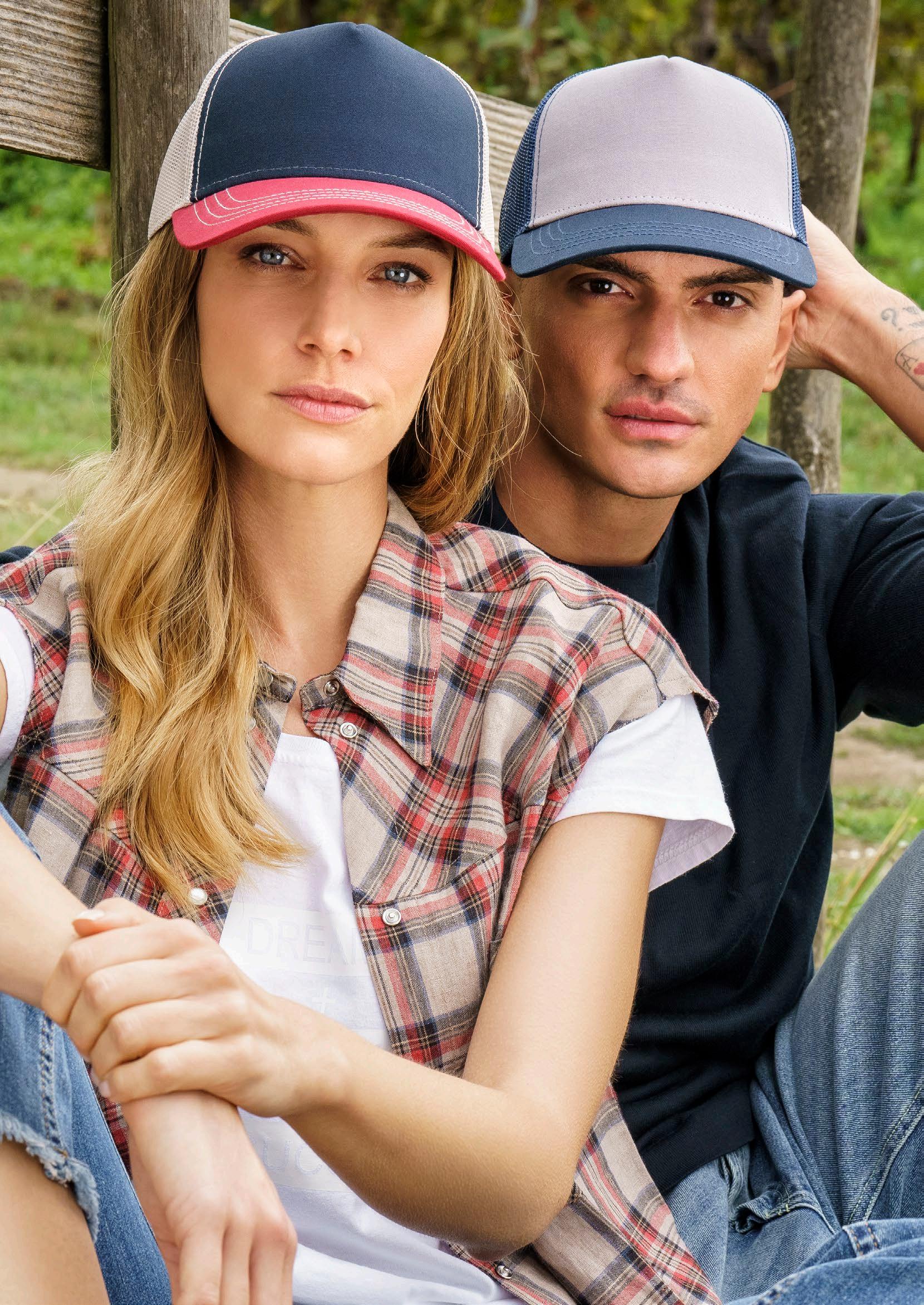 Fritidscap i resirkulert polyestercanvas og resirkulert polyester mesh på siden og bak. 5 paneler og lett buet brem. Snapback.