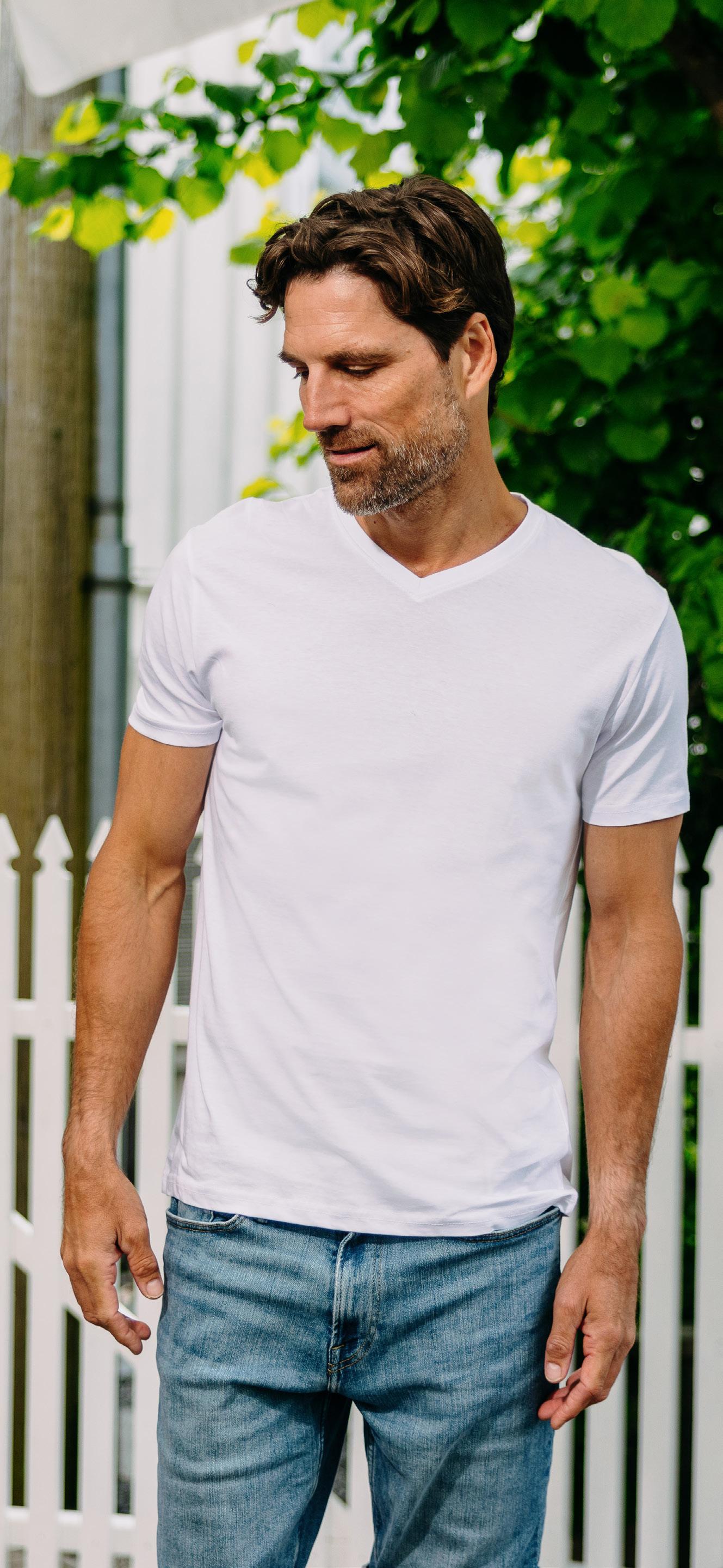 Classic fashion t-shirt med V-hals i høy, økologisk bomullskvalitet.
