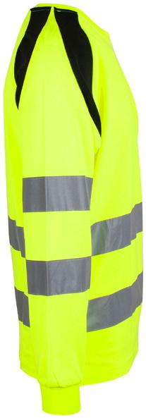 Unisex HI-VI langermet t-skjorte. Elastiske reflekser over skuldre, rundt ermer og midje. Kontrastfarget og elastisk ribb i hals, ermer og liv. CE-merket EN 20471, klasse 2.