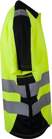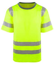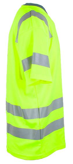 Pro-dry behandlet hi-vi unisex t-skjorte med elastiske heat transferreflekser rundt midje og ermer. Kontrastfelt i sort på hals og sidepanel. CE-merket EN 20471, klasse 2.