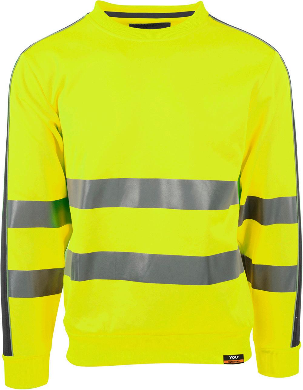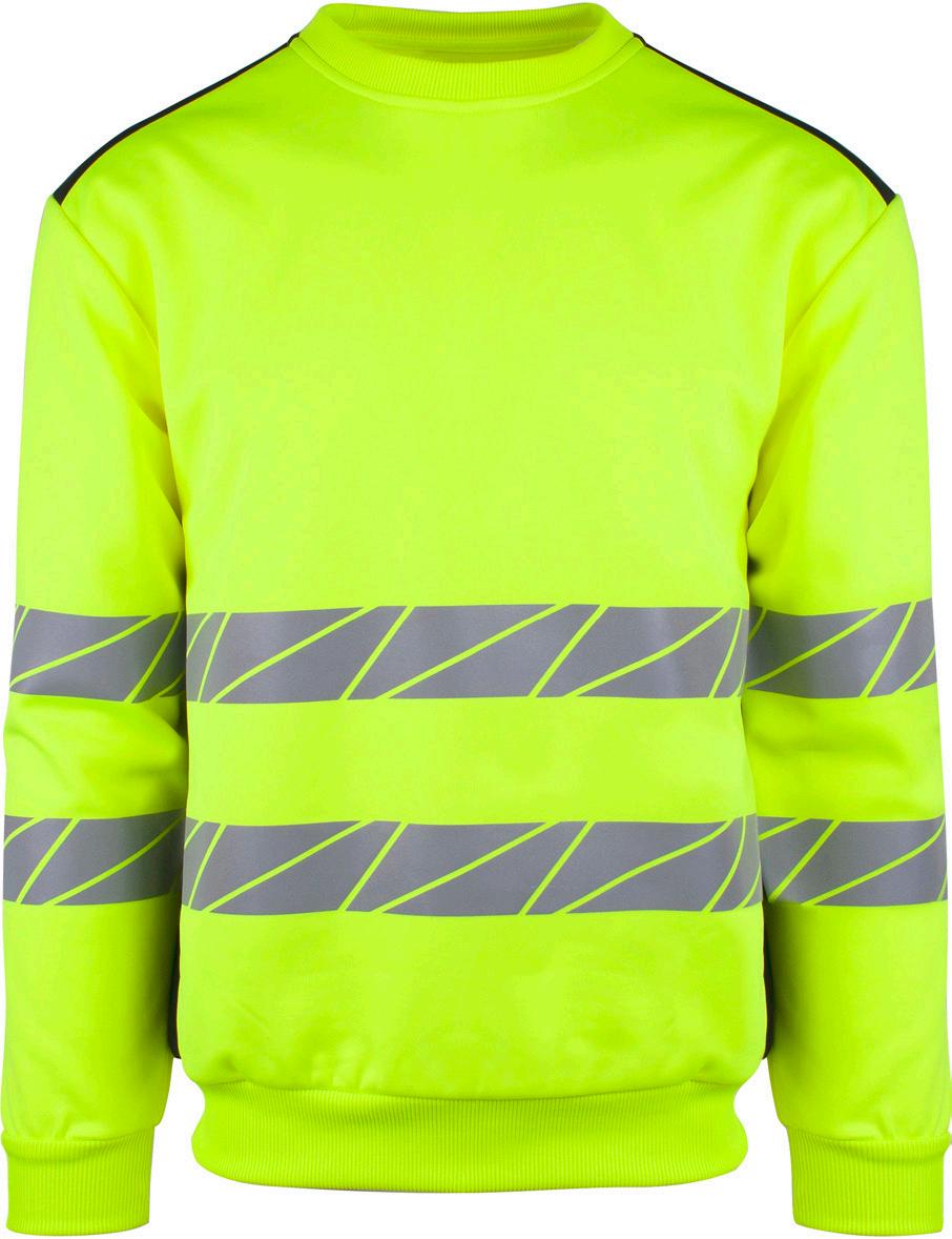 Unisex Pro-dry sweatshirt med elastiske refleksstriper på skuldre, ermer og mage. Kontrastfarget rib i hals, mansjetter og linning. Pustende og fukttransporterende stoff gjør den perfekt til aktivitet. CE-merket EN 20471, klasse 2.