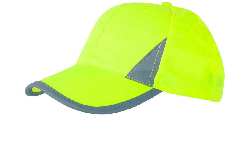 Caps i fluoriserende safety farge med refleksdetaljer. Regulerbar velcrolukning.