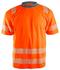Unisex HI-VI t-skjorte i behagelig poly/cotton. Pustende utside og en myk bomullsinnside for en ekstra komfort. Kontrastfarget halsrib. Elastiske reflekser over skuldre, rundt ermer og midje. CE-merket EN 20471, klasse 2.