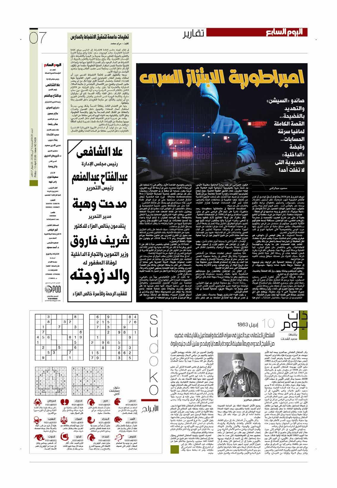 اكتشف في هذا العدد تغطيات مفصلة عن السياسة والاقتصاد والرياضة والمنوعات والتحقيقات المصوّرة، مع دمج تقارير ميدانية وآراء وتحليلات يومية. مناسب للقراءة السريعة أو التحميل كملف PDF للأرشفة، ويوفر روابط وملخصات لأهم الأحداث في 10 أبريل 2026. مثالي للباحثين عن تحديثات فورية، الصحفيين، والمهتمين بأخبار مصر والعالم.