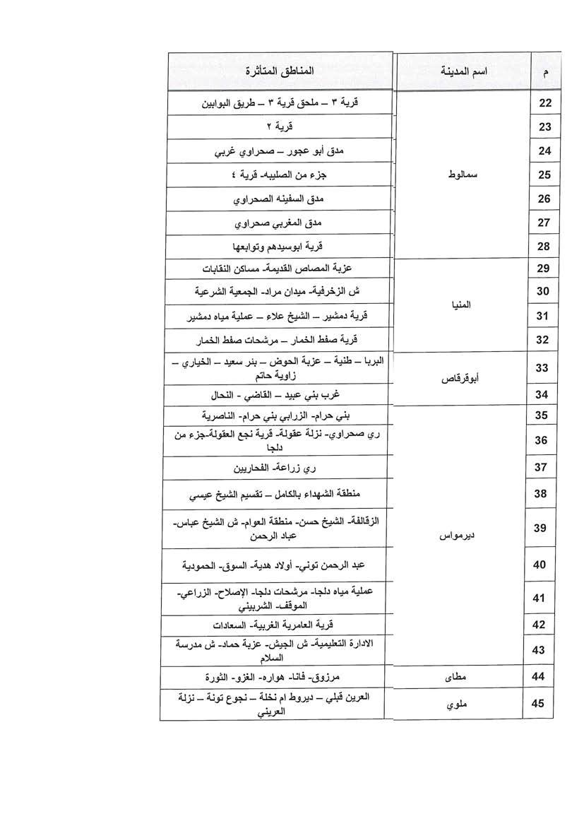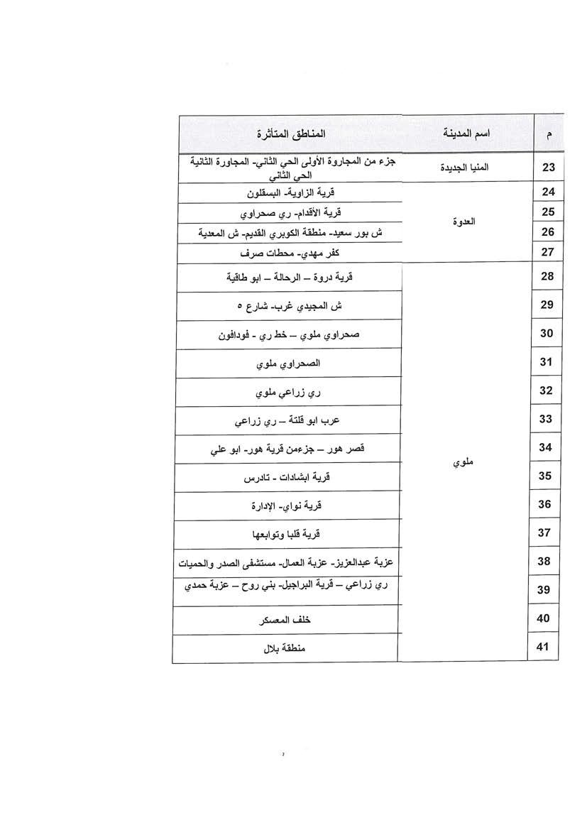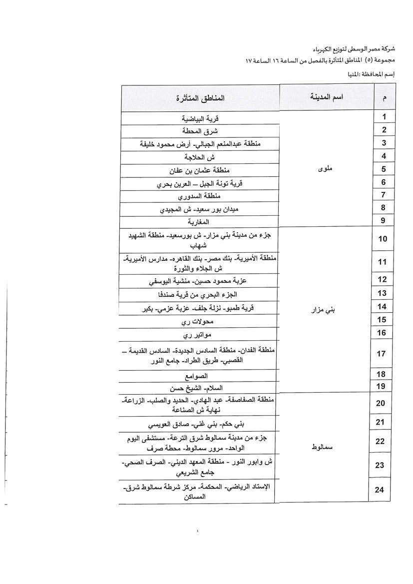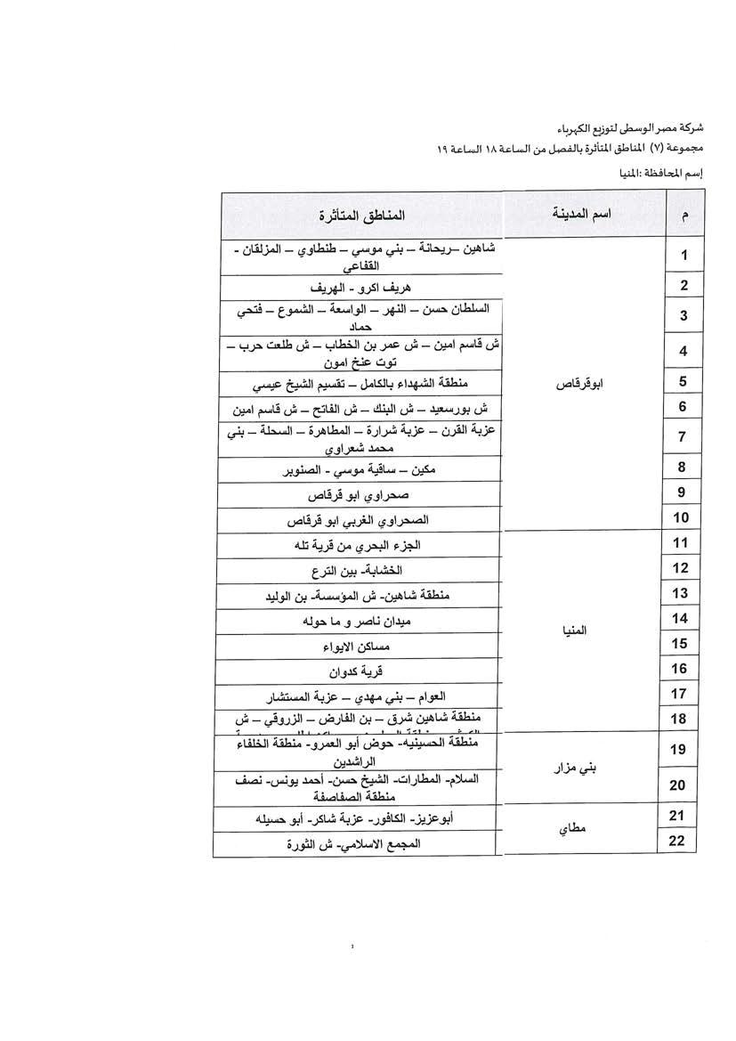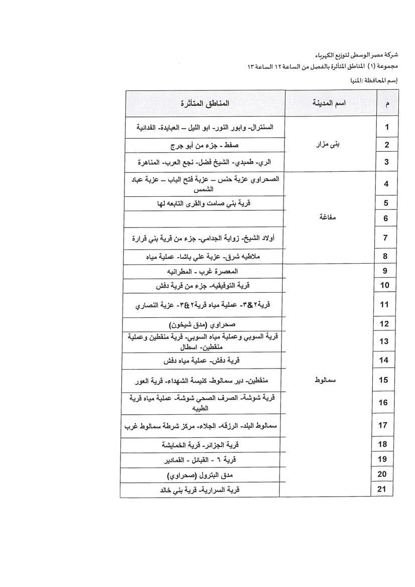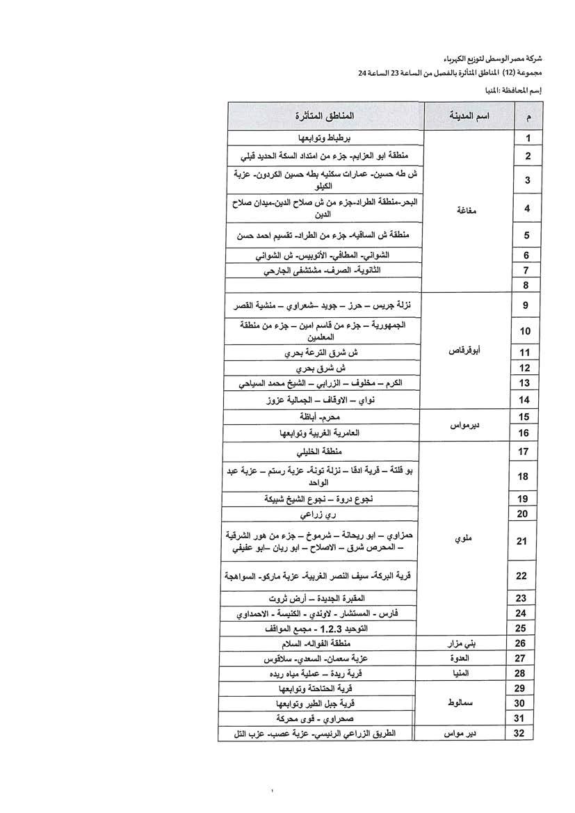 الحكومة تكشف جدول مواعيد تخفيف أحمال الكهرباء فى محافظة المنيا