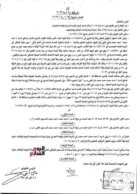 قرار ترقيات الاولى