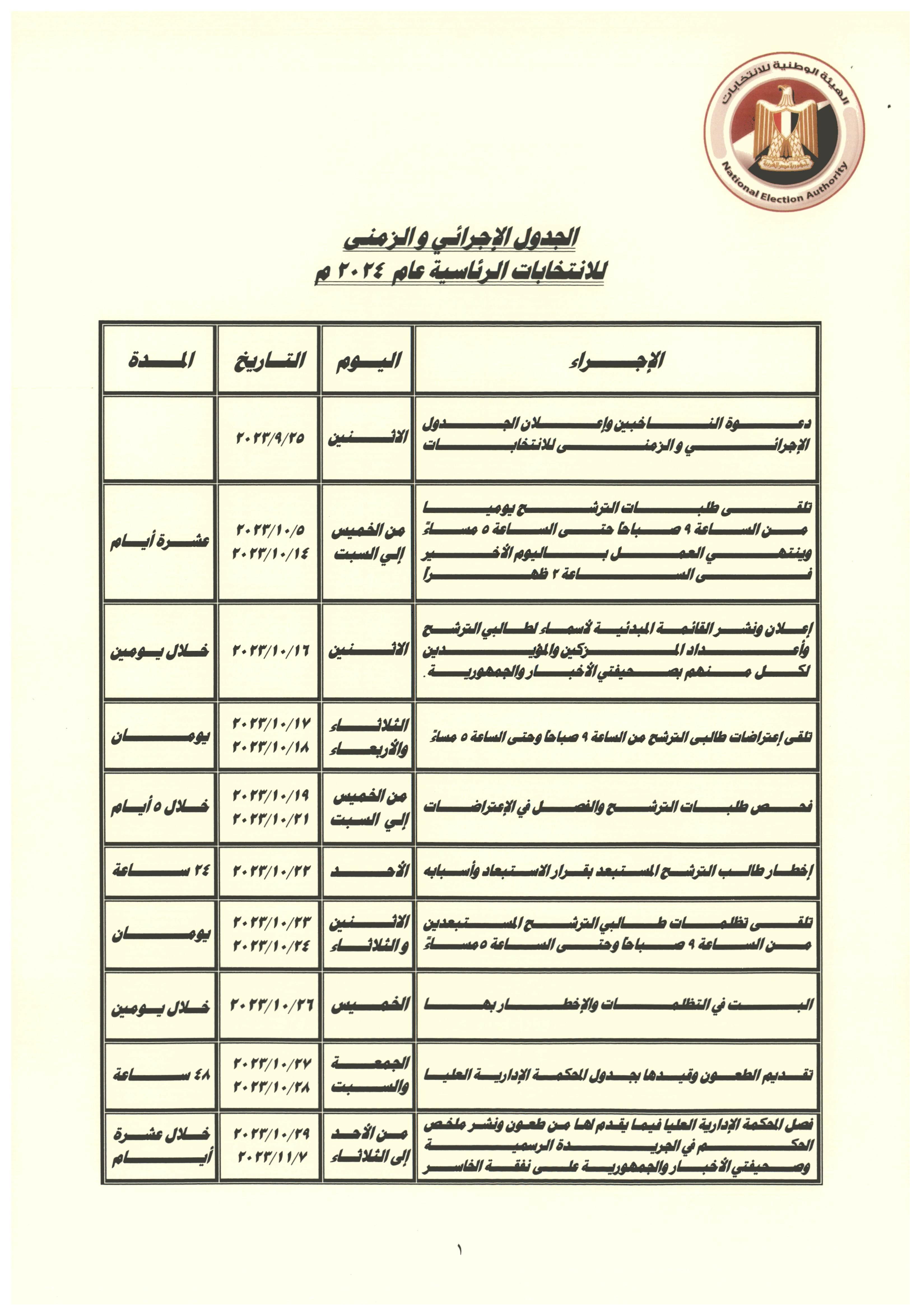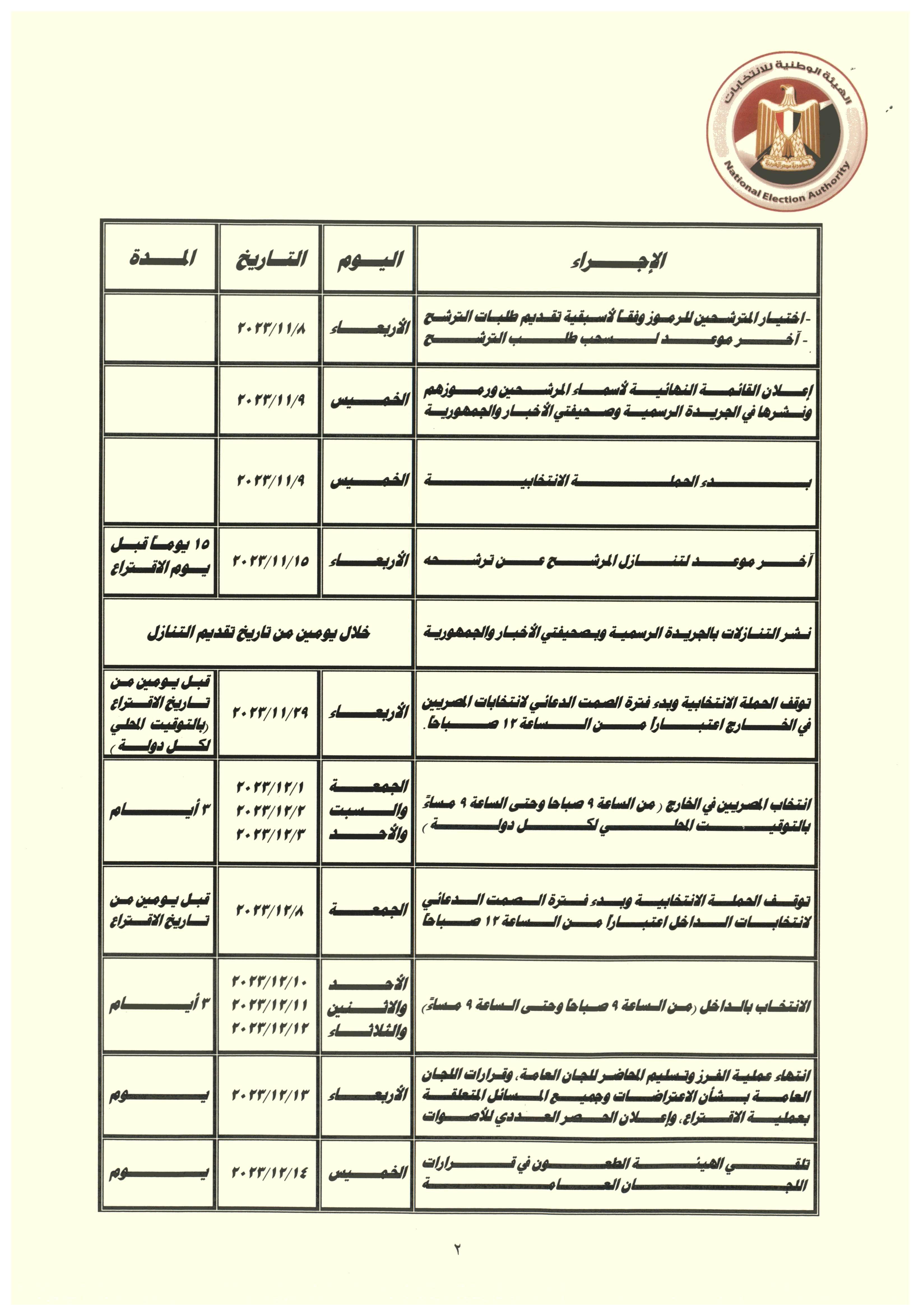 الجدول الزمني الكامل للانتخابات الرئاسية