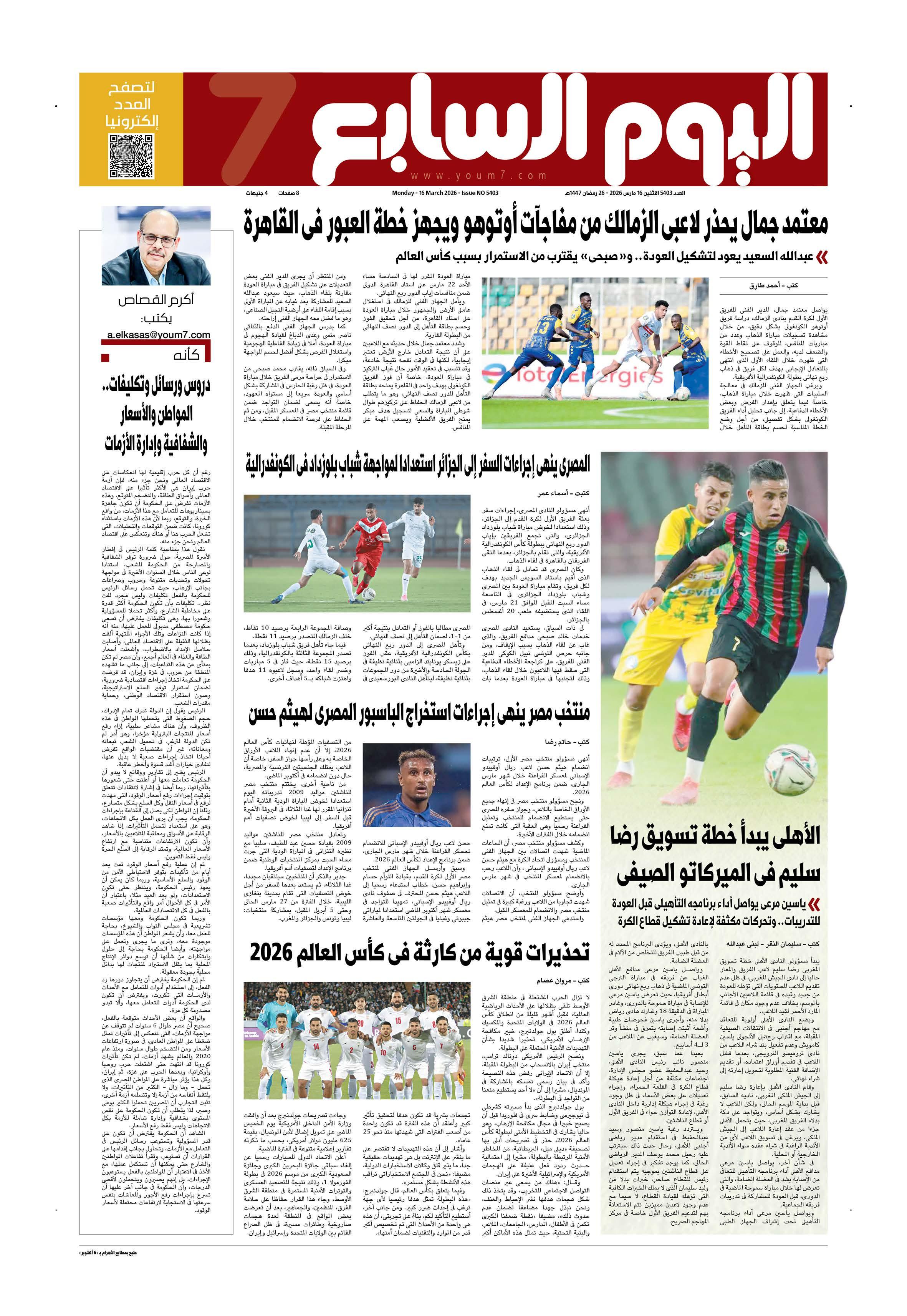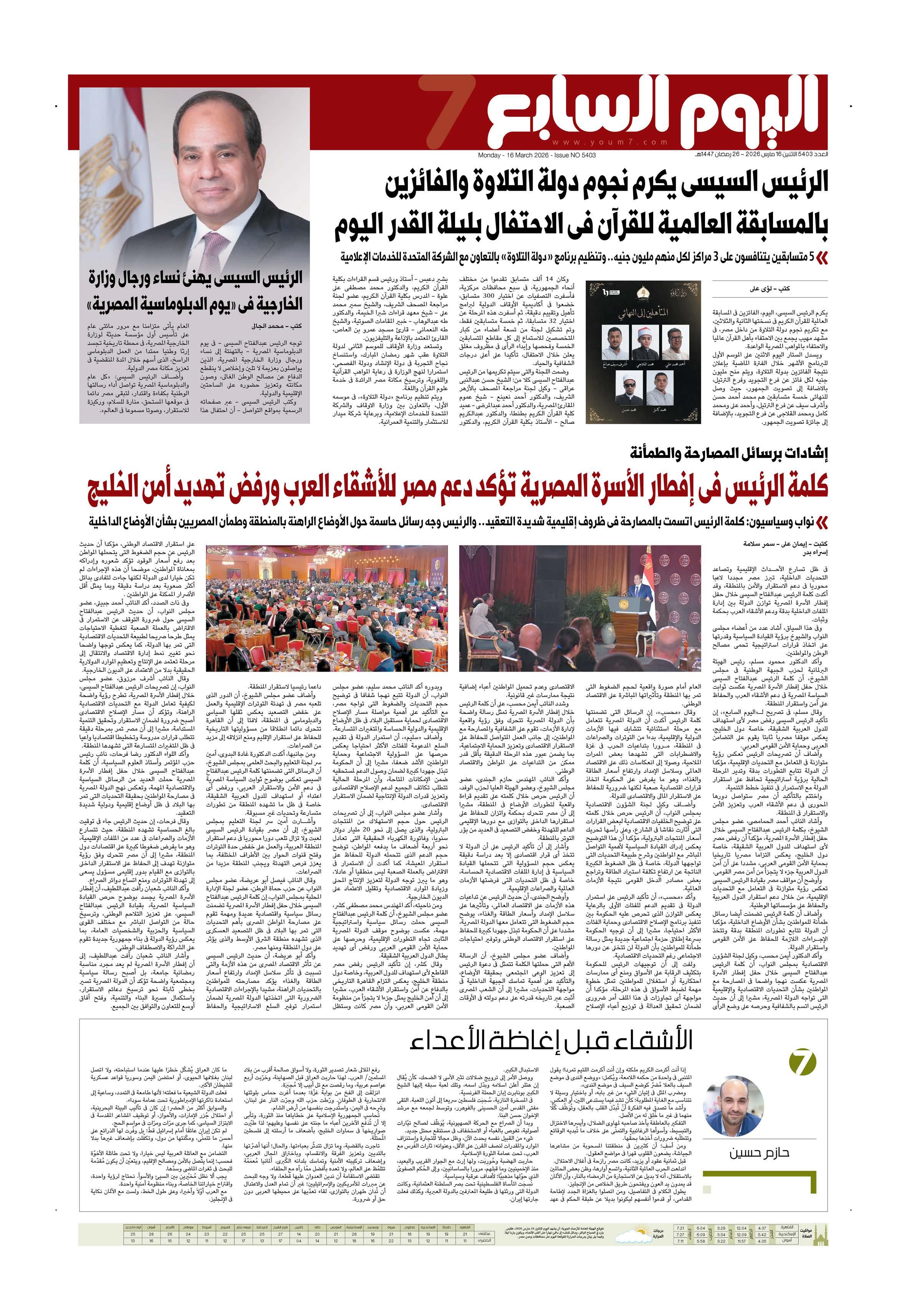 عدد اليوم السابع 16-03-2026