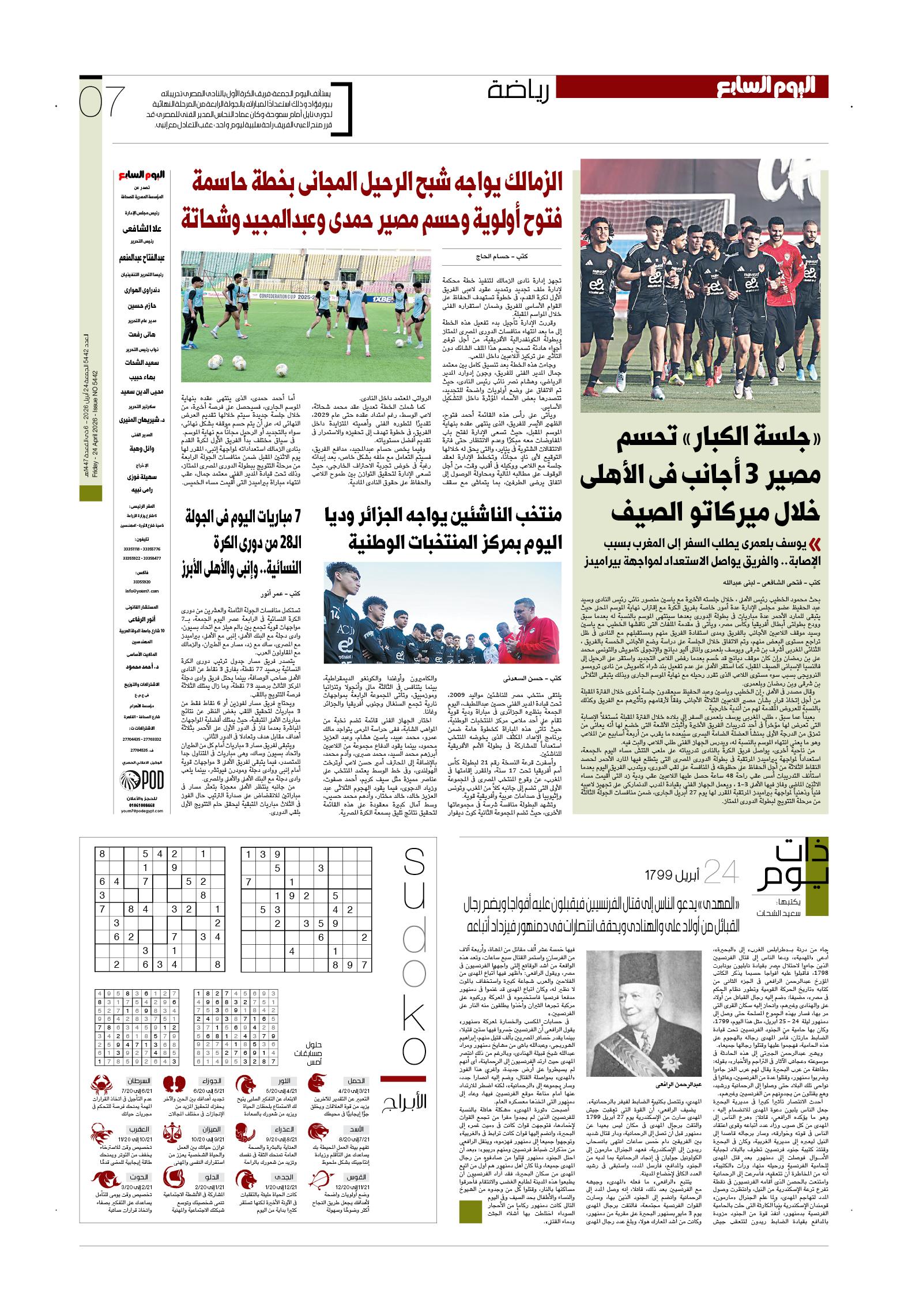 عدد غدا اليوم السابع 24-04-2026