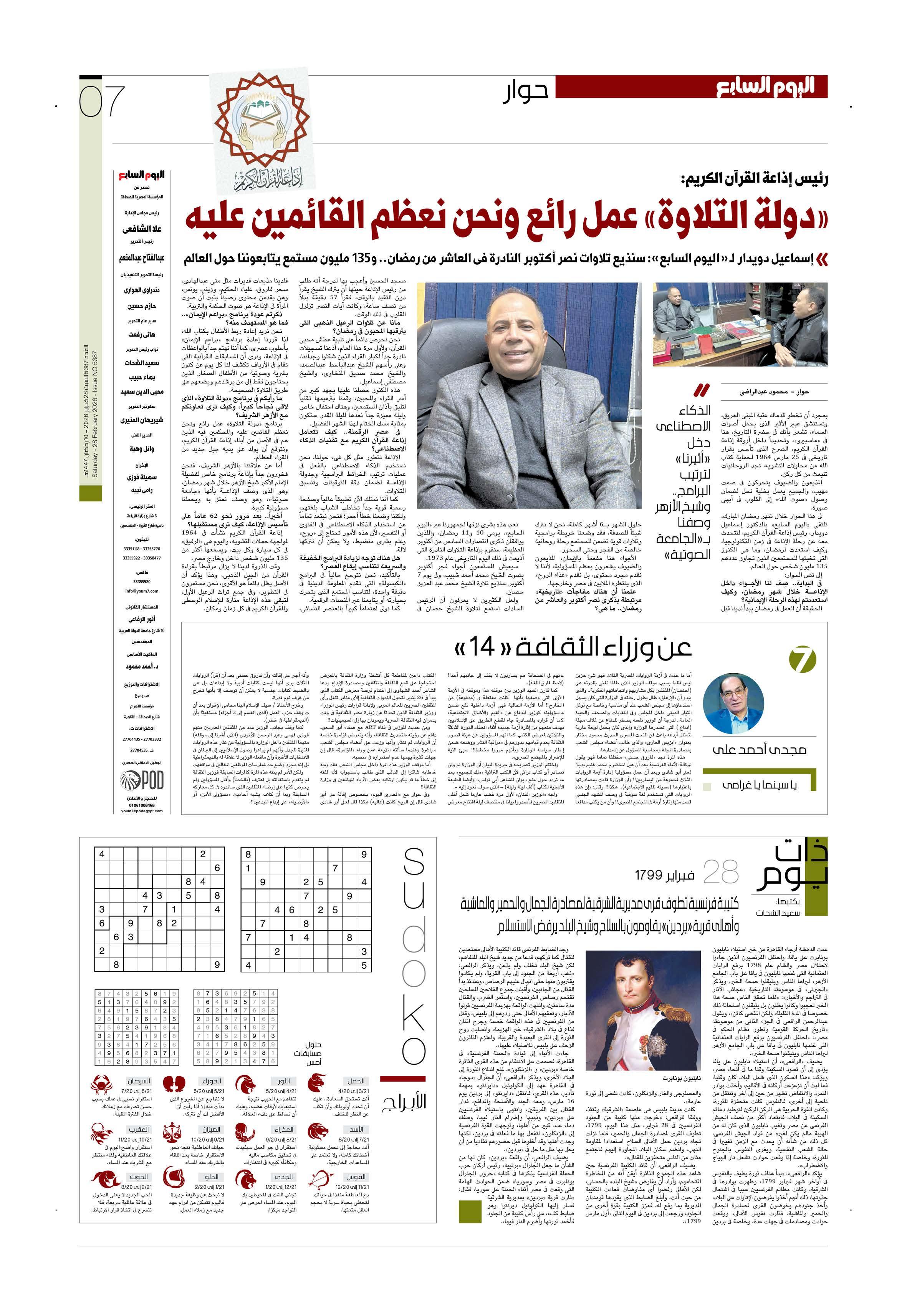 عدد اليوم السابع 28-02-2026