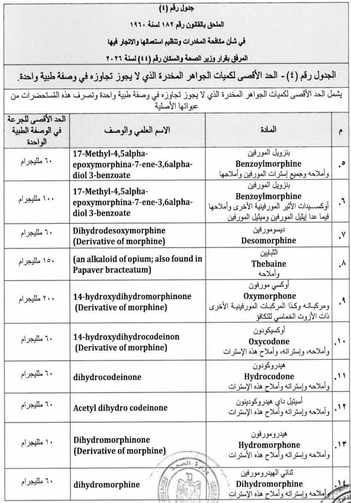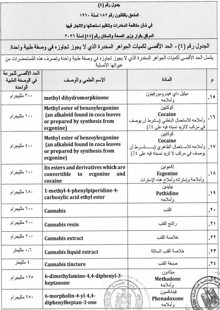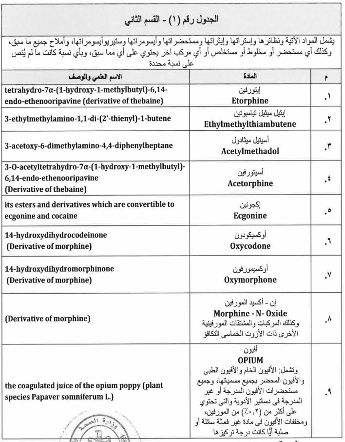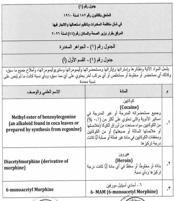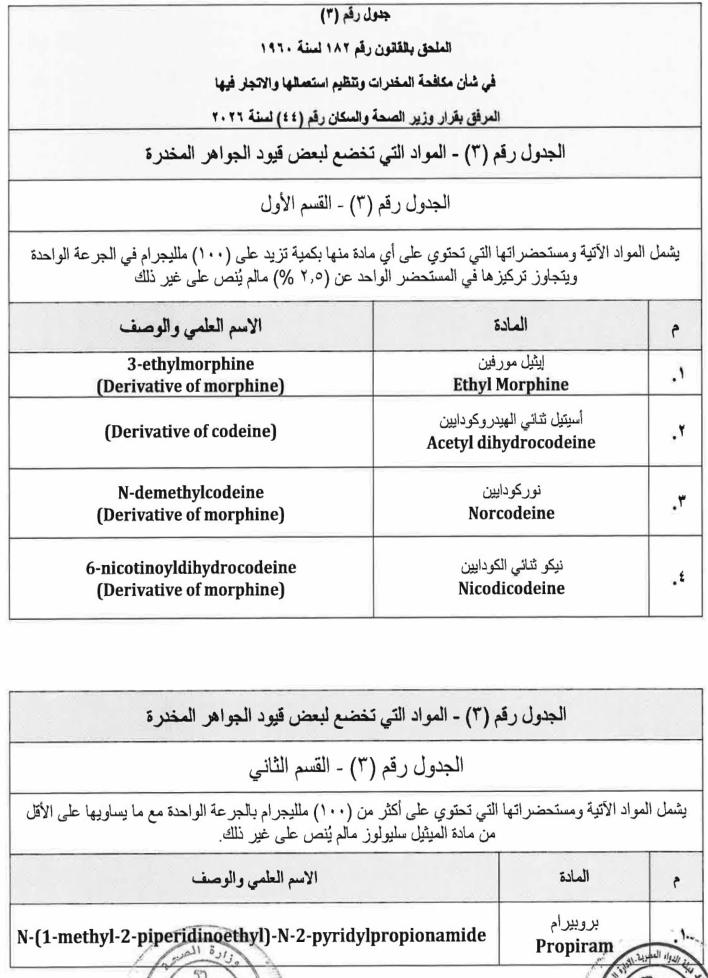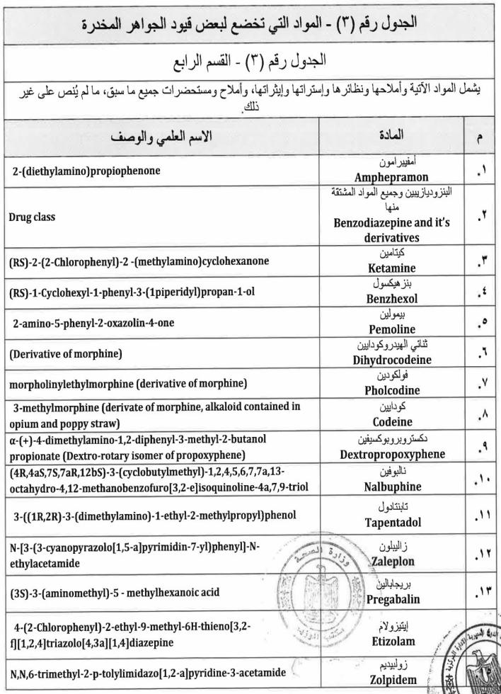 ننشر نص قرار وزارة الصحة بالمواد المدرجة ضمن جداول المخدرات