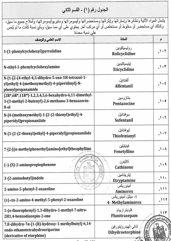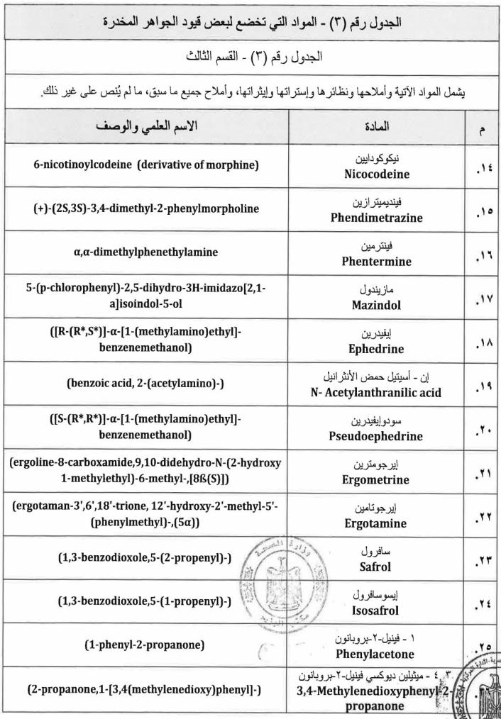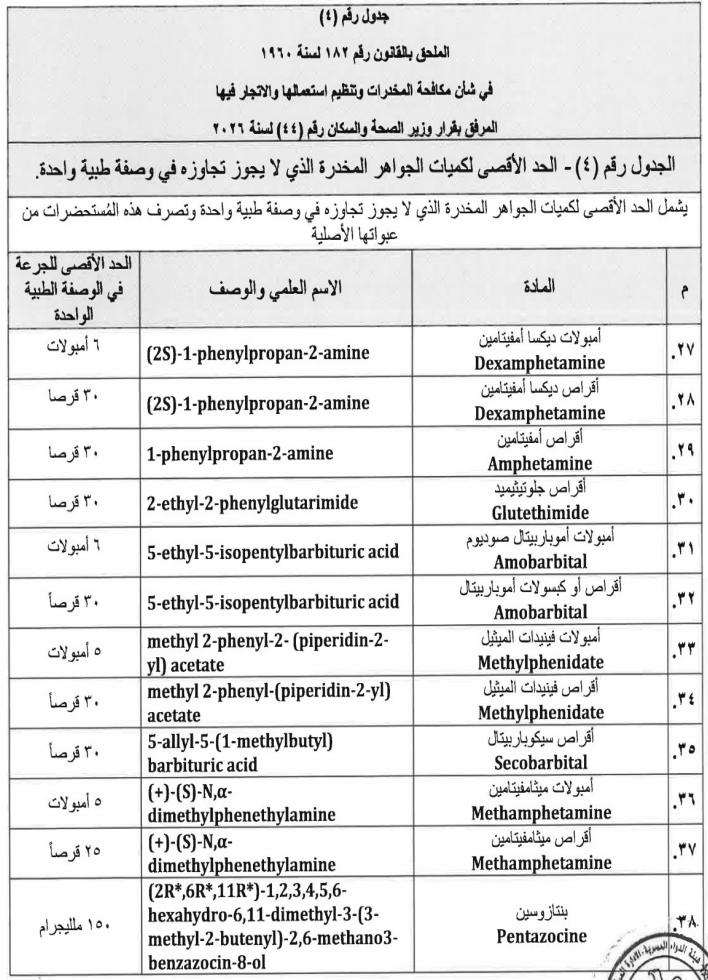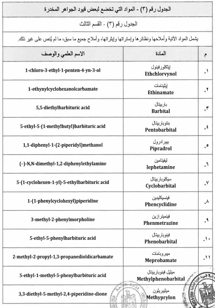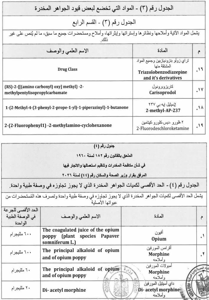 ننشر نص قرار وزارة الصحة بالمواد المدرجة ضمن جداول المخدرات