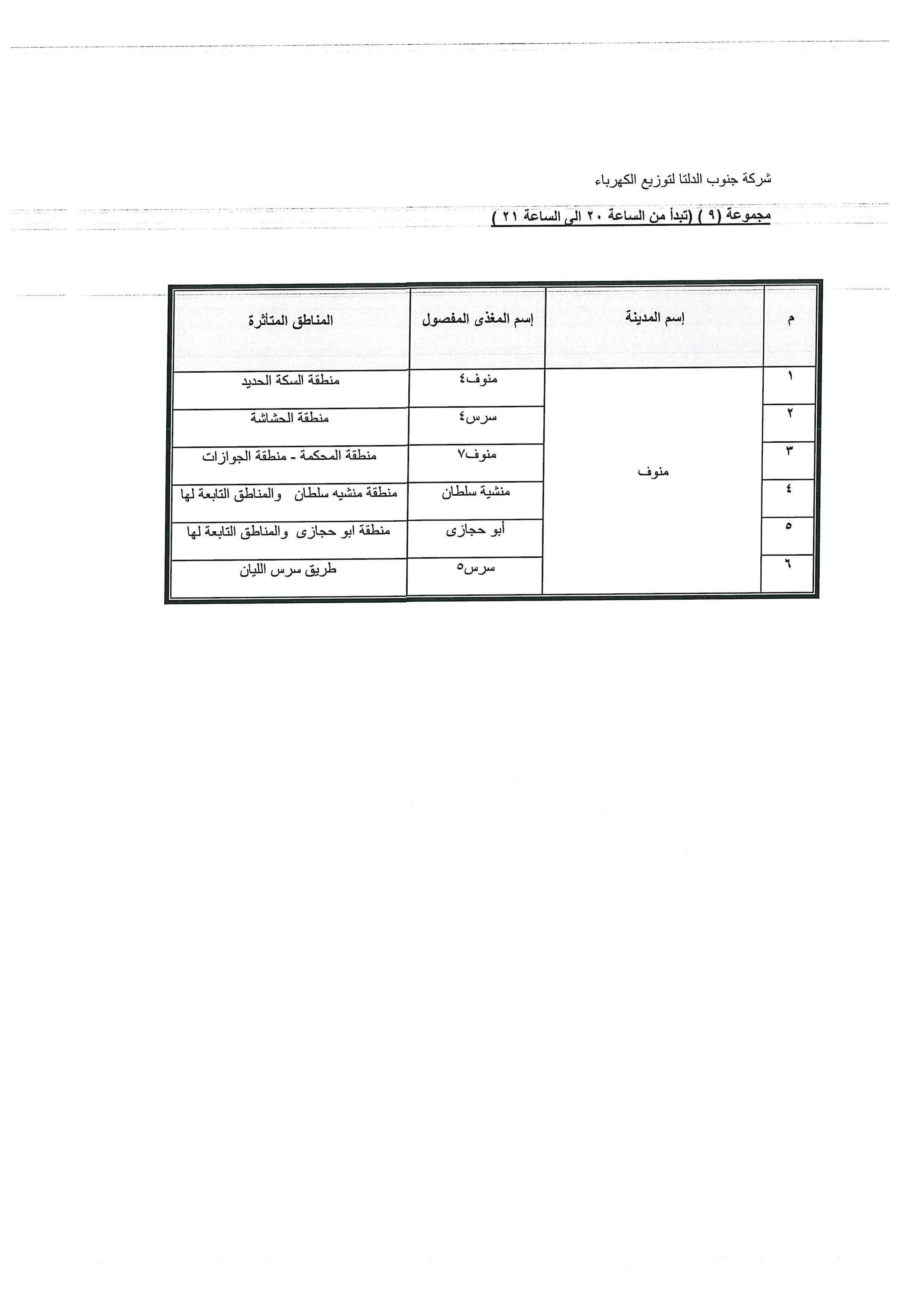 الحكومة تكشف جدول مواعيد تخفيف الأحمال فى محافظة المنوفية