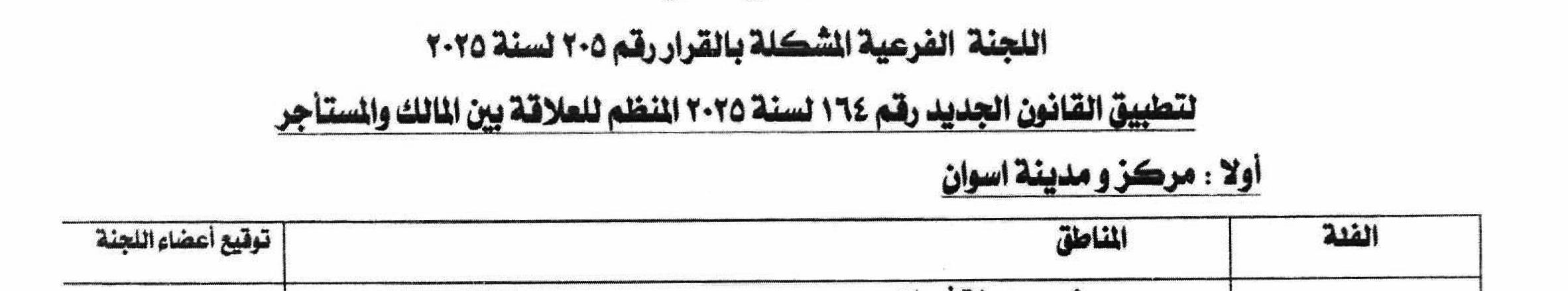 الجريدة الرسمية تنشر قرار محافظ أسوان بشأن المناطق المؤجرة لغرض سكنى