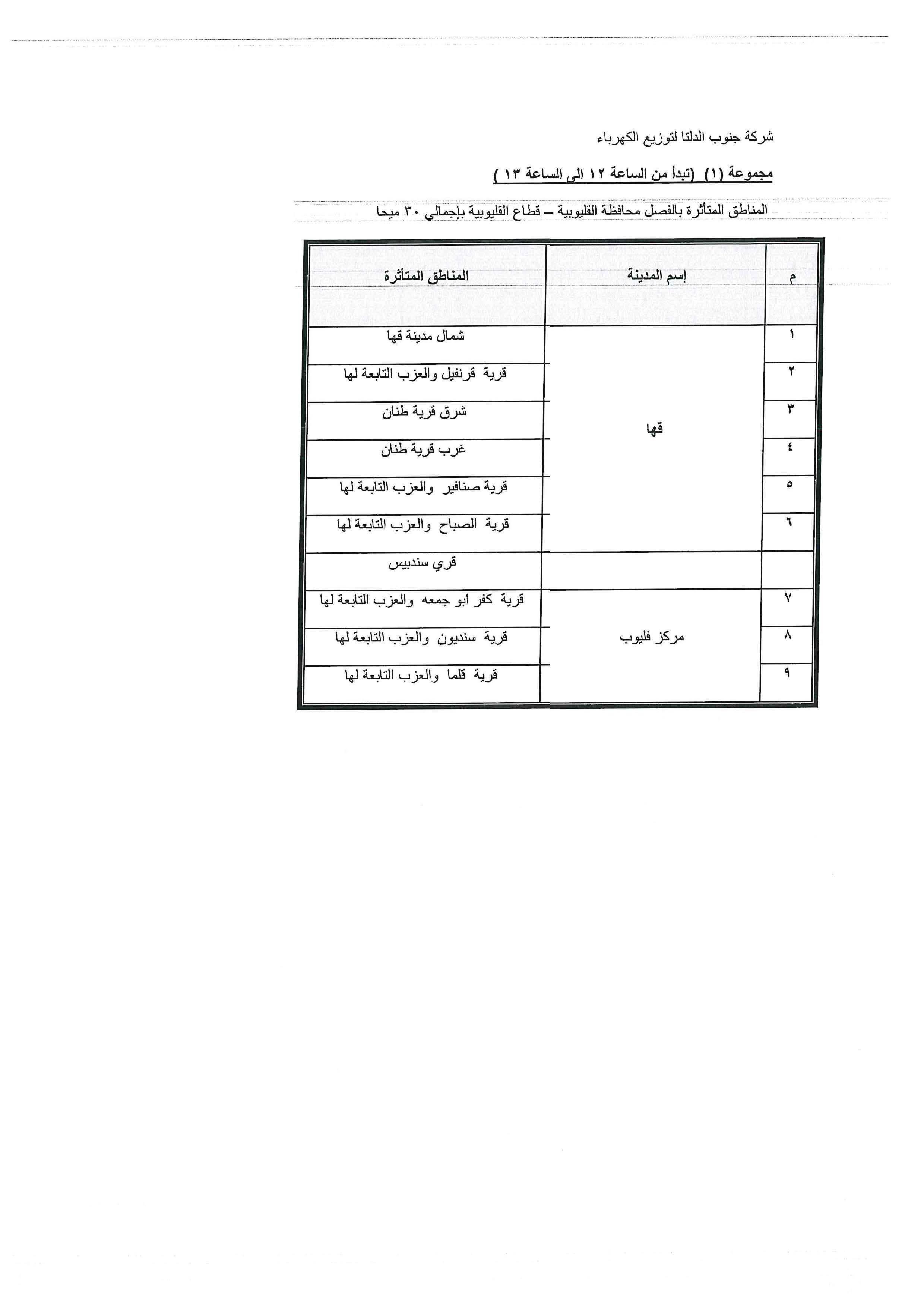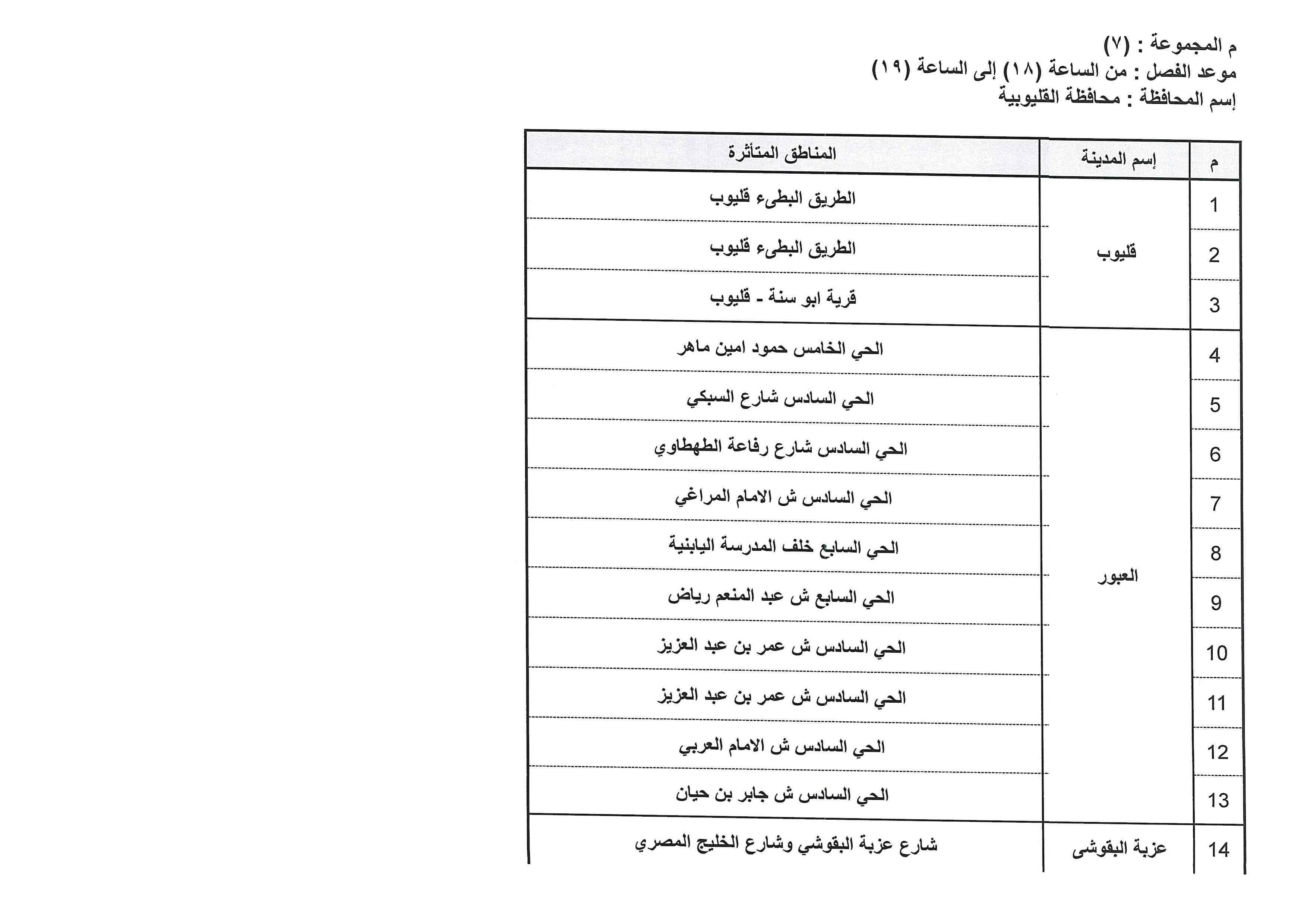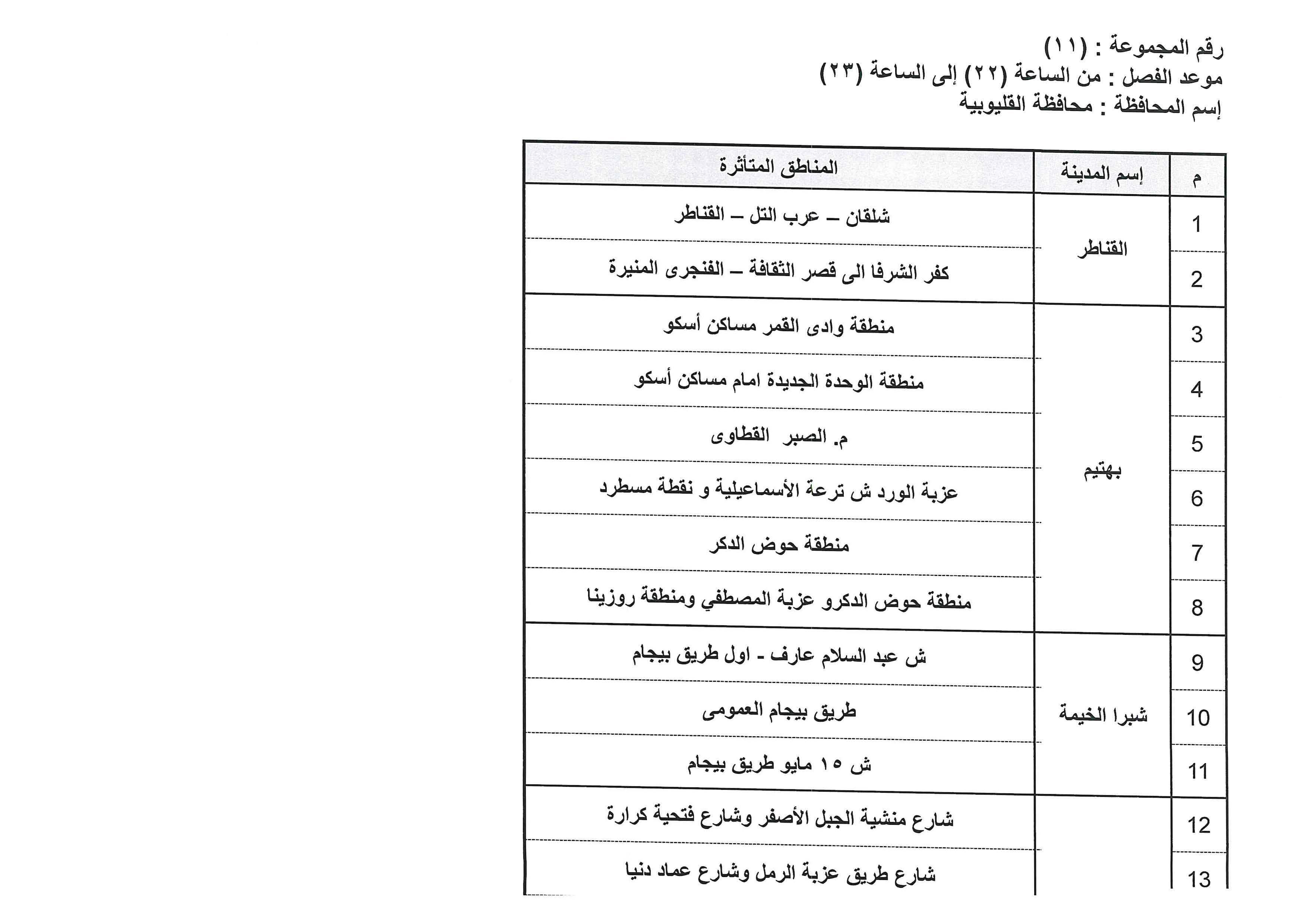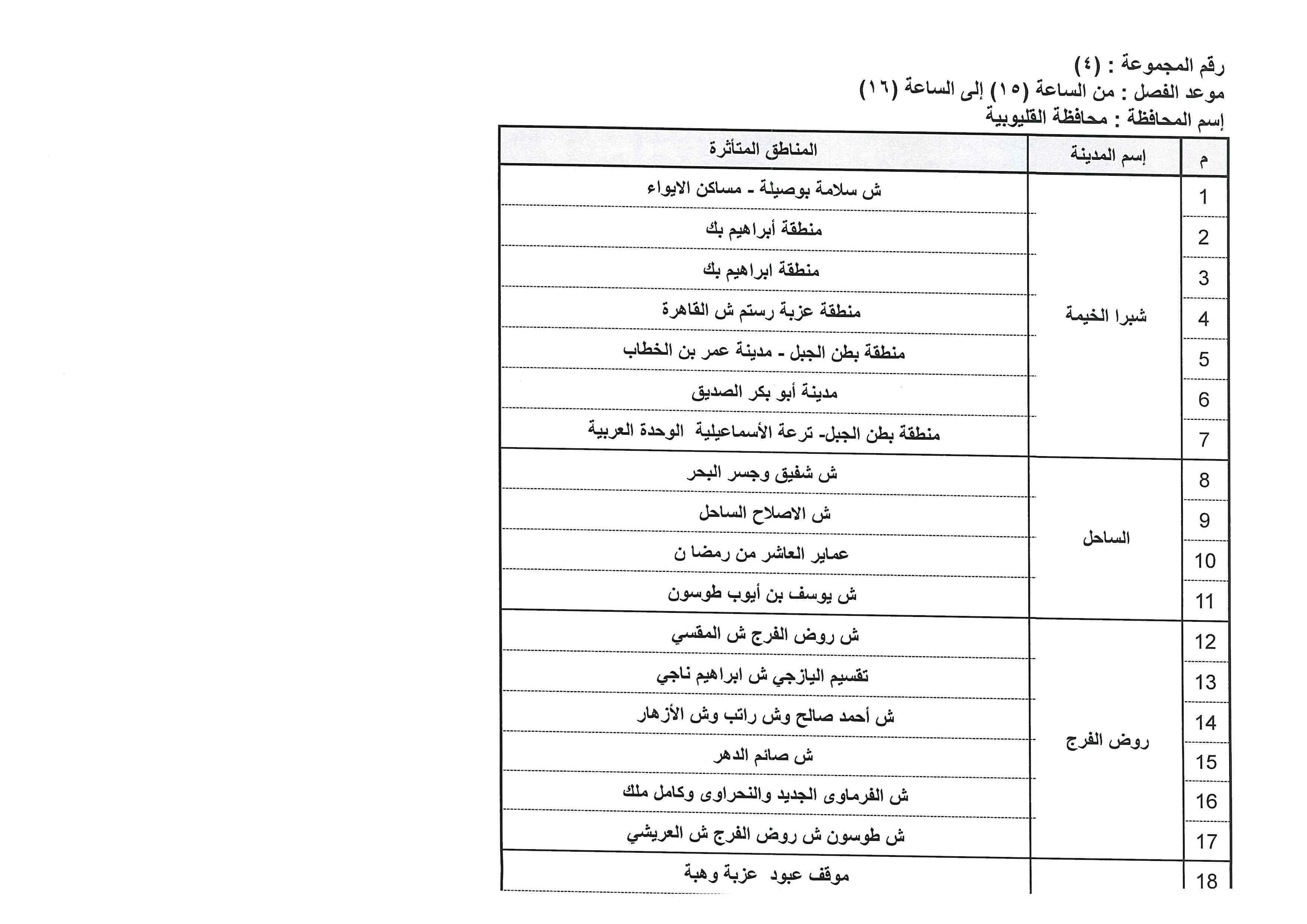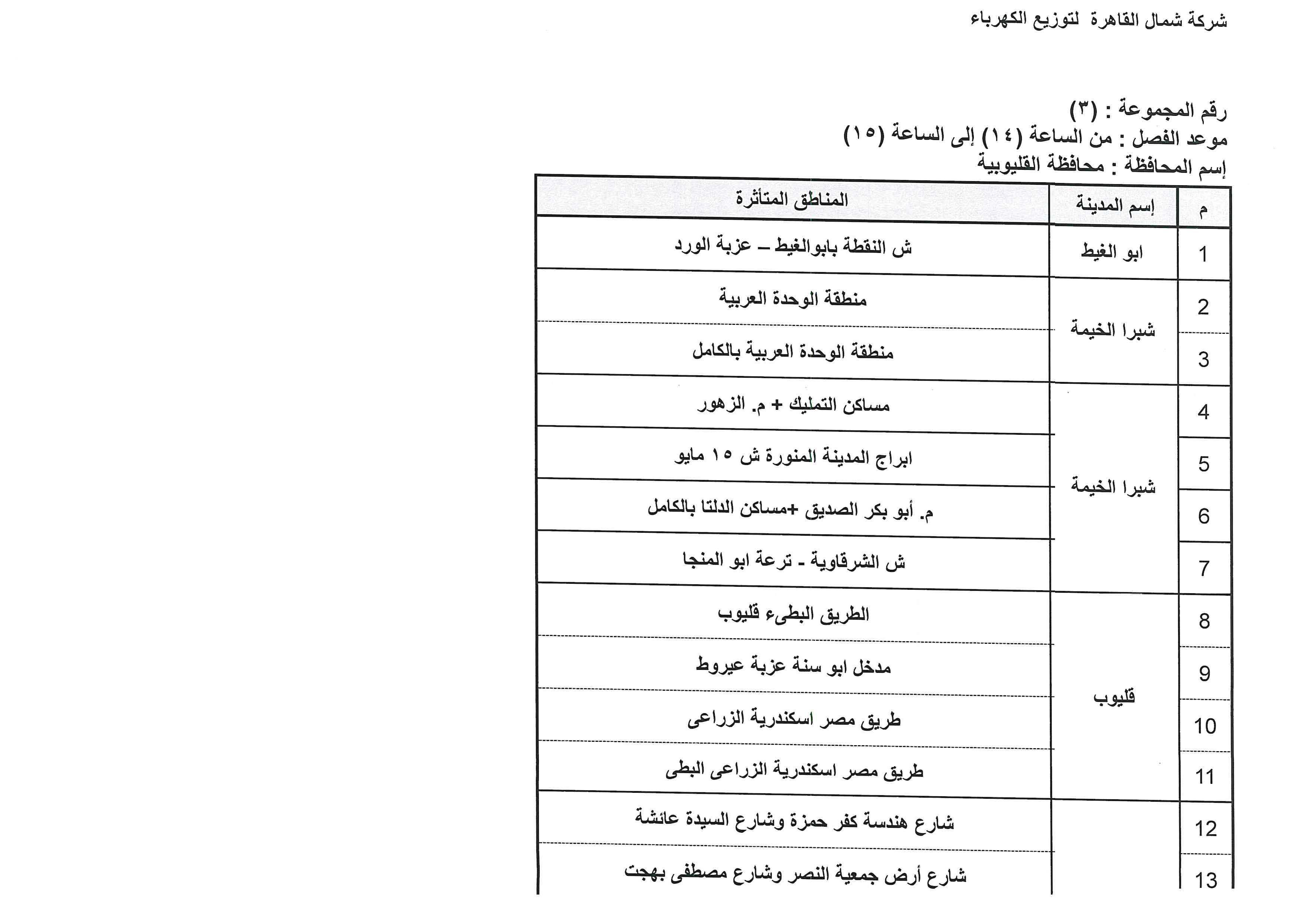 مواعيد فصل الكهرباء عن قري ومدن محافظة القليوبية