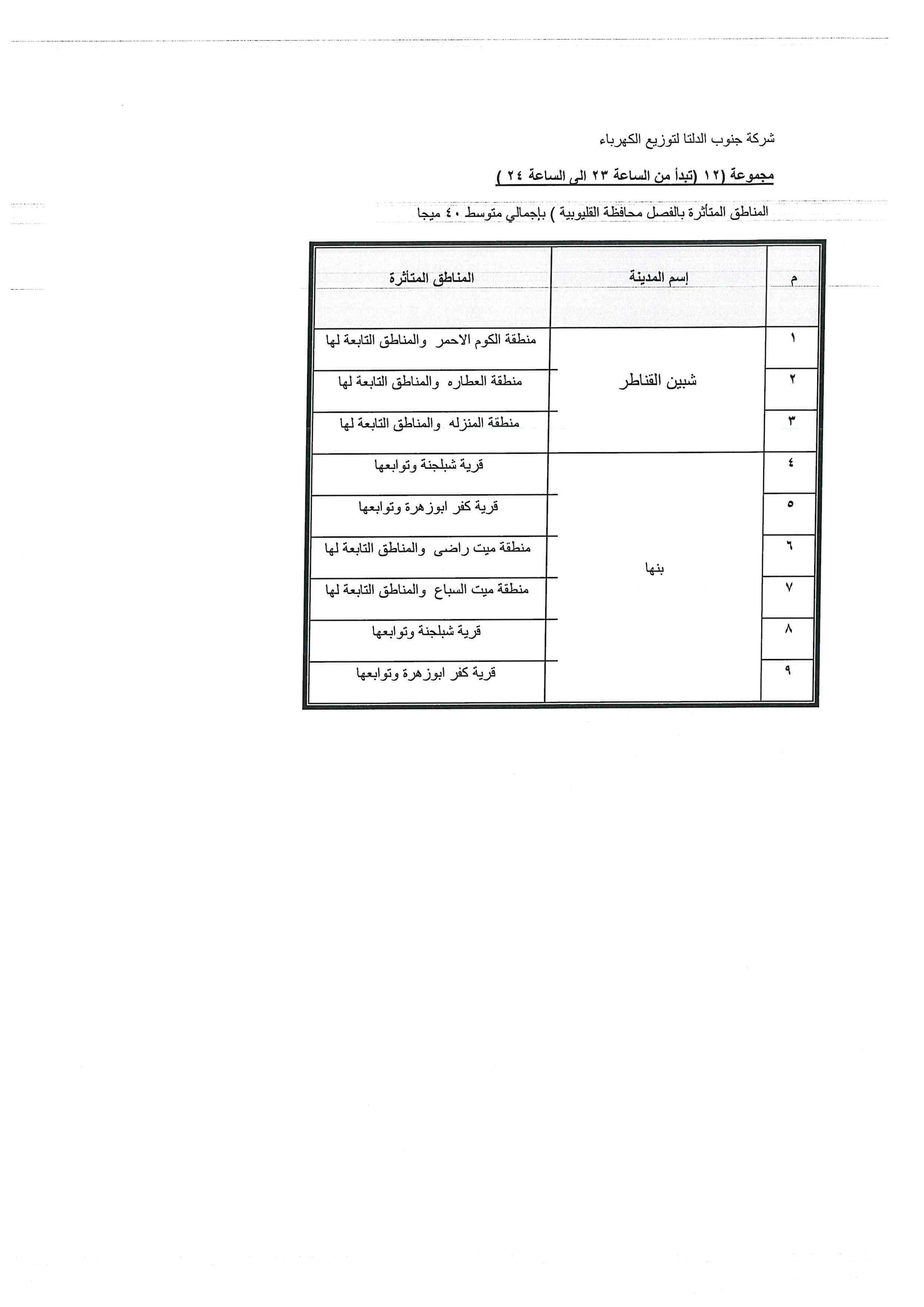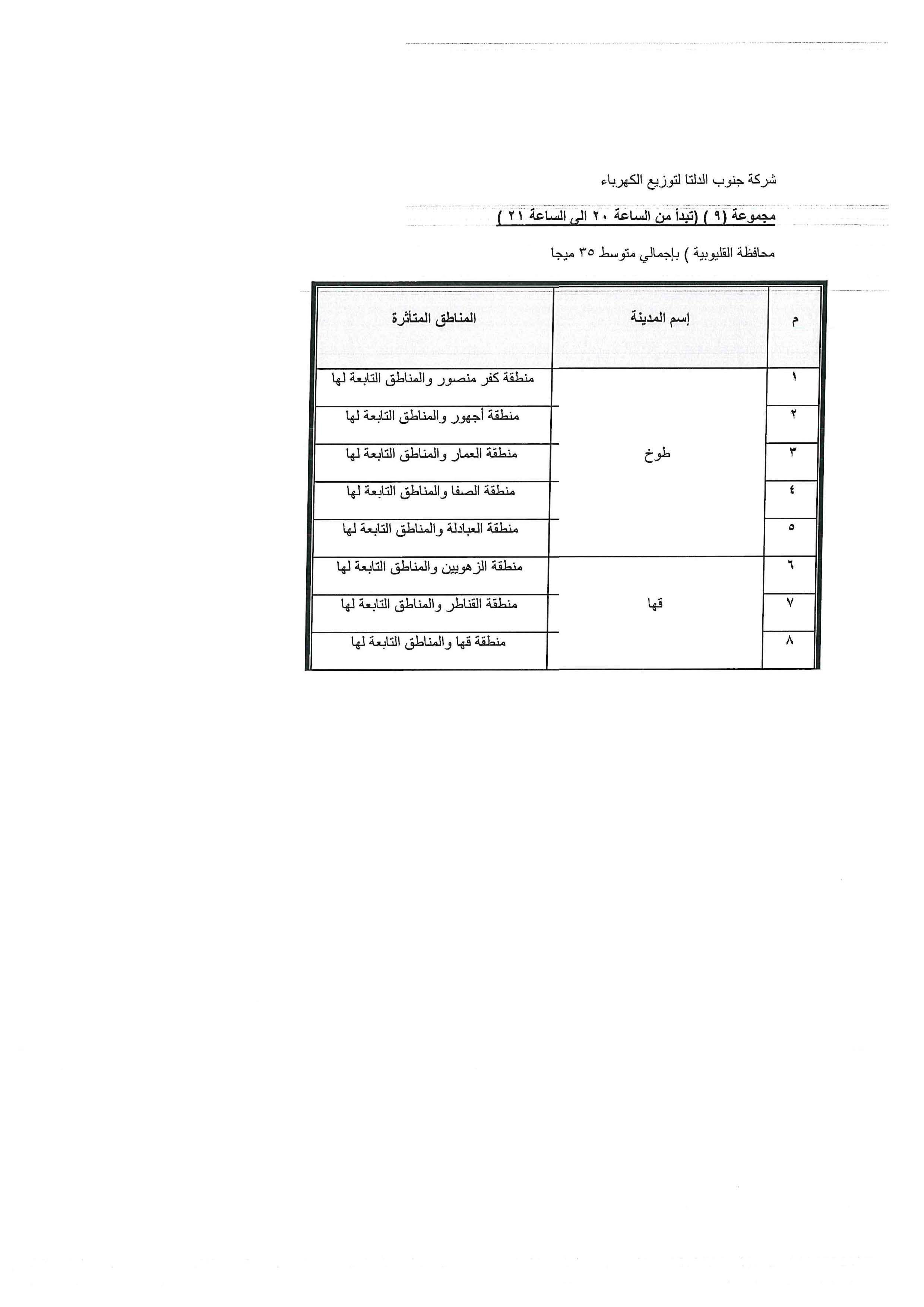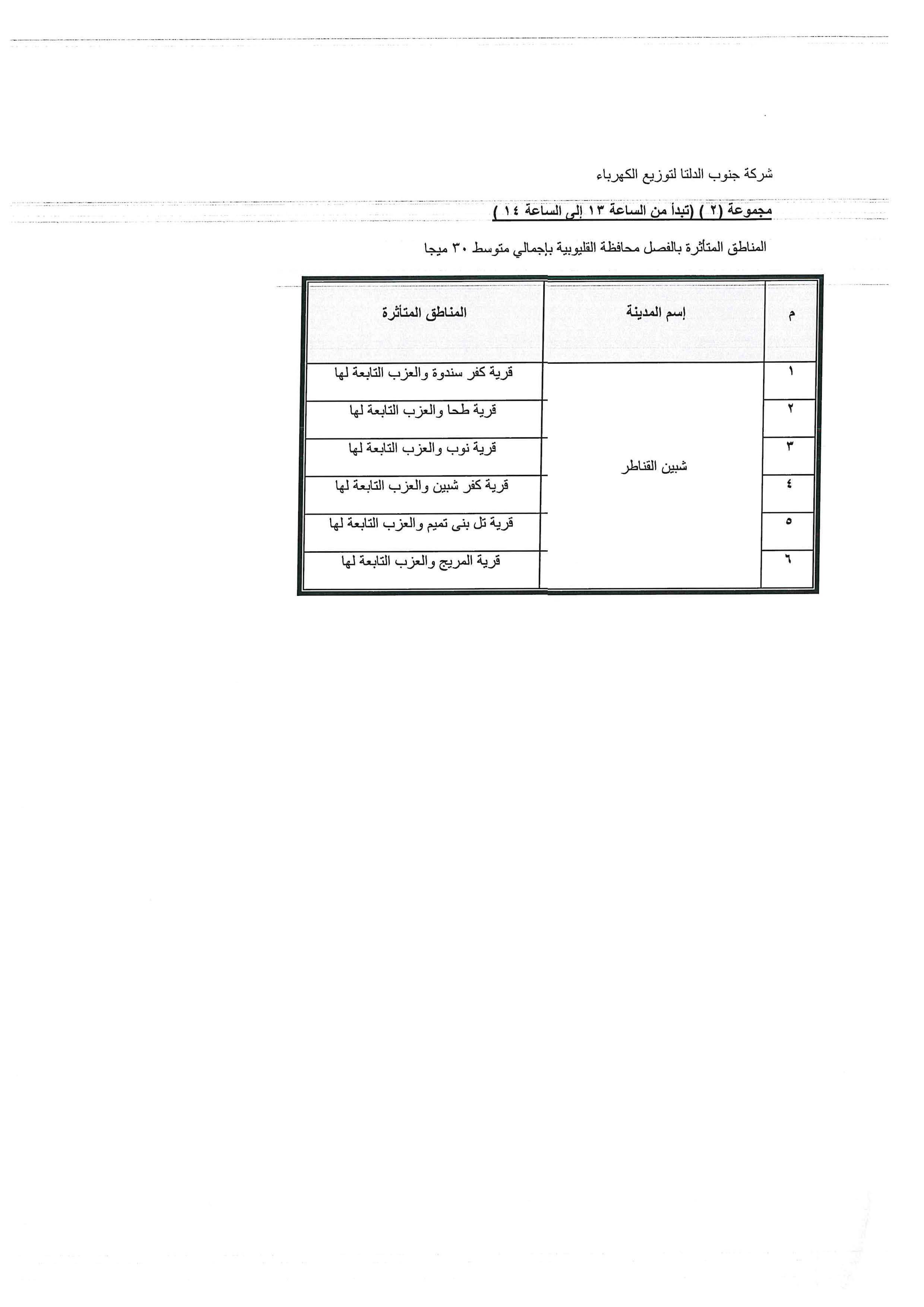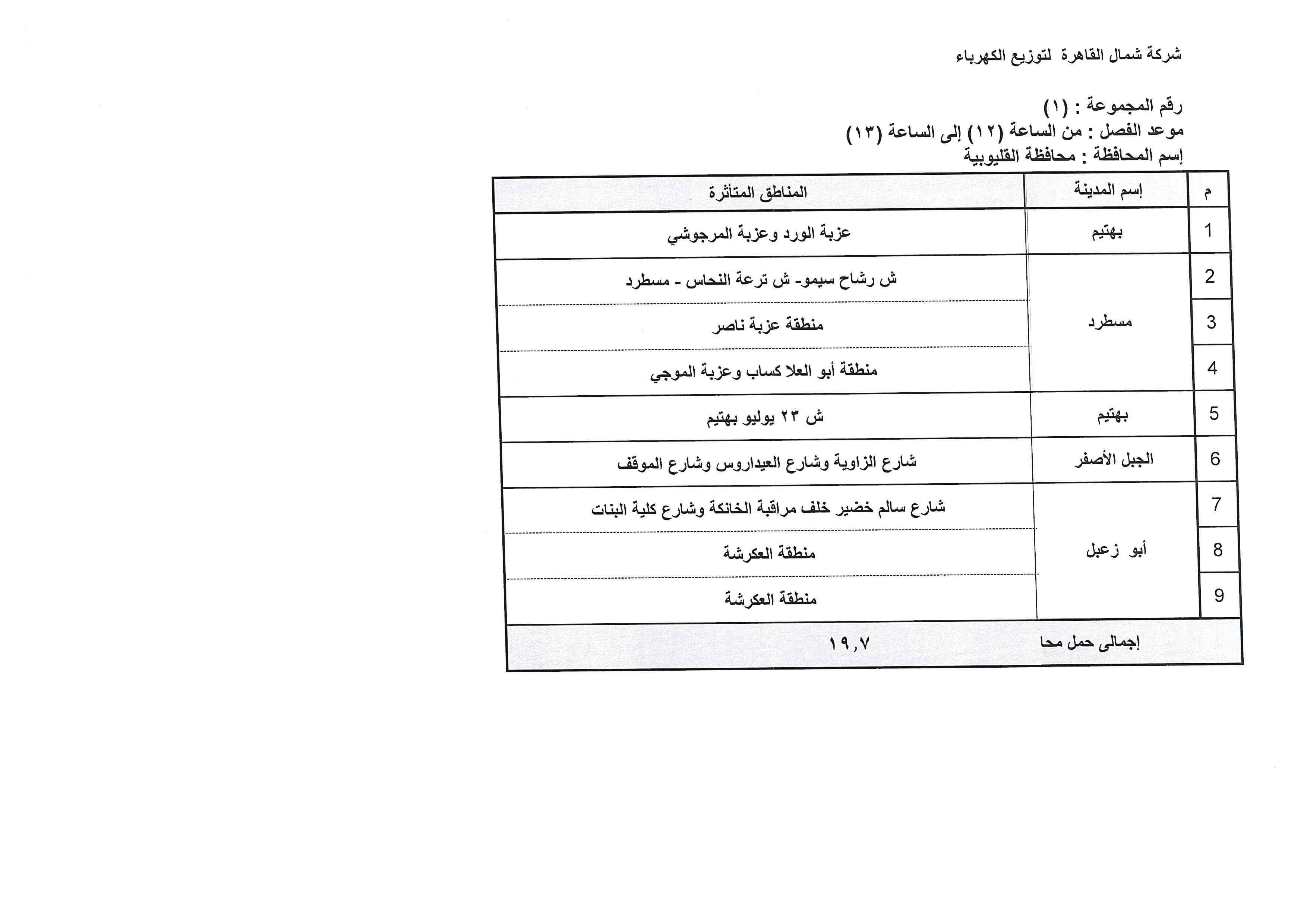 مواعيد فصل الكهرباء عن قري ومدن محافظة القليوبية