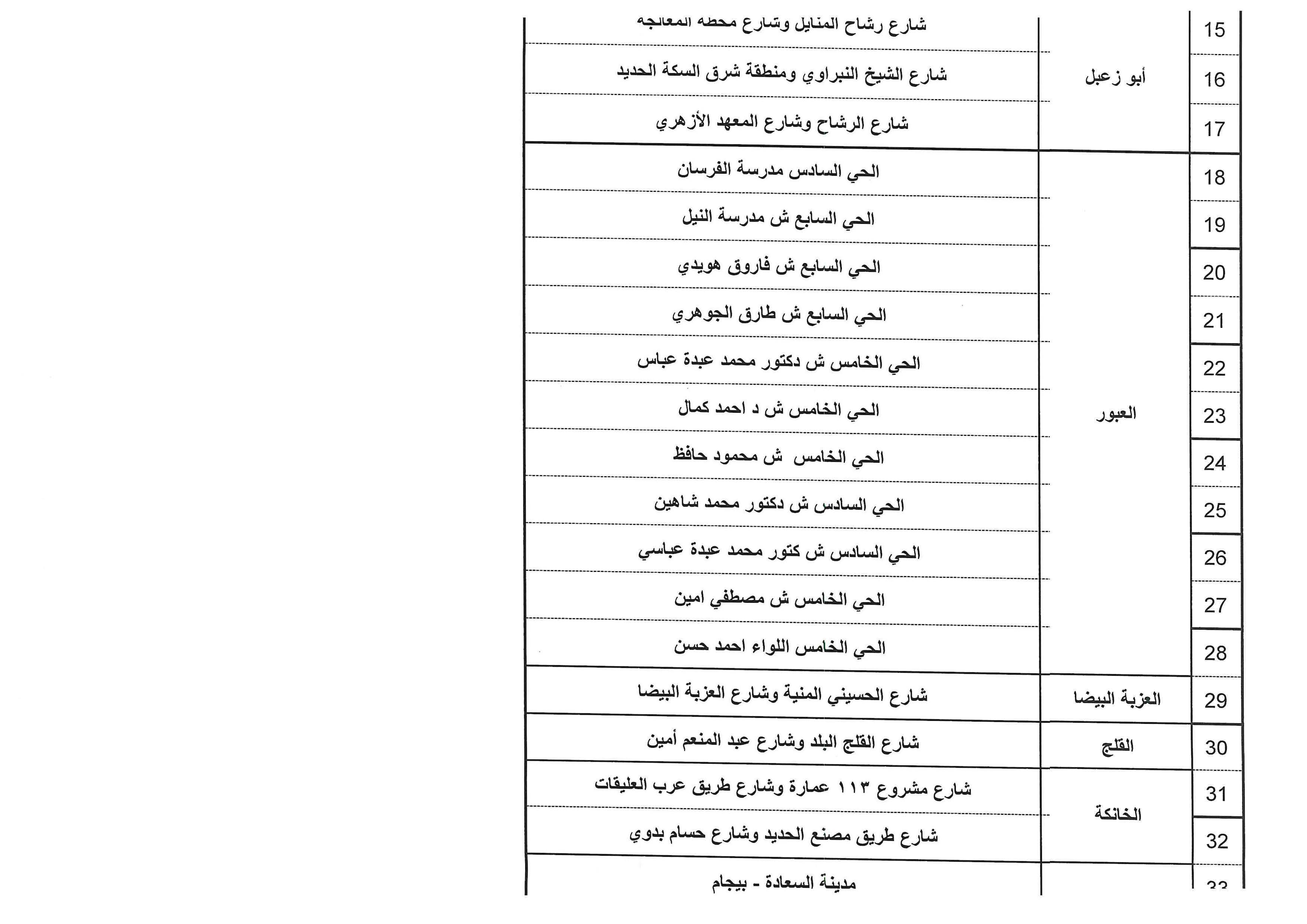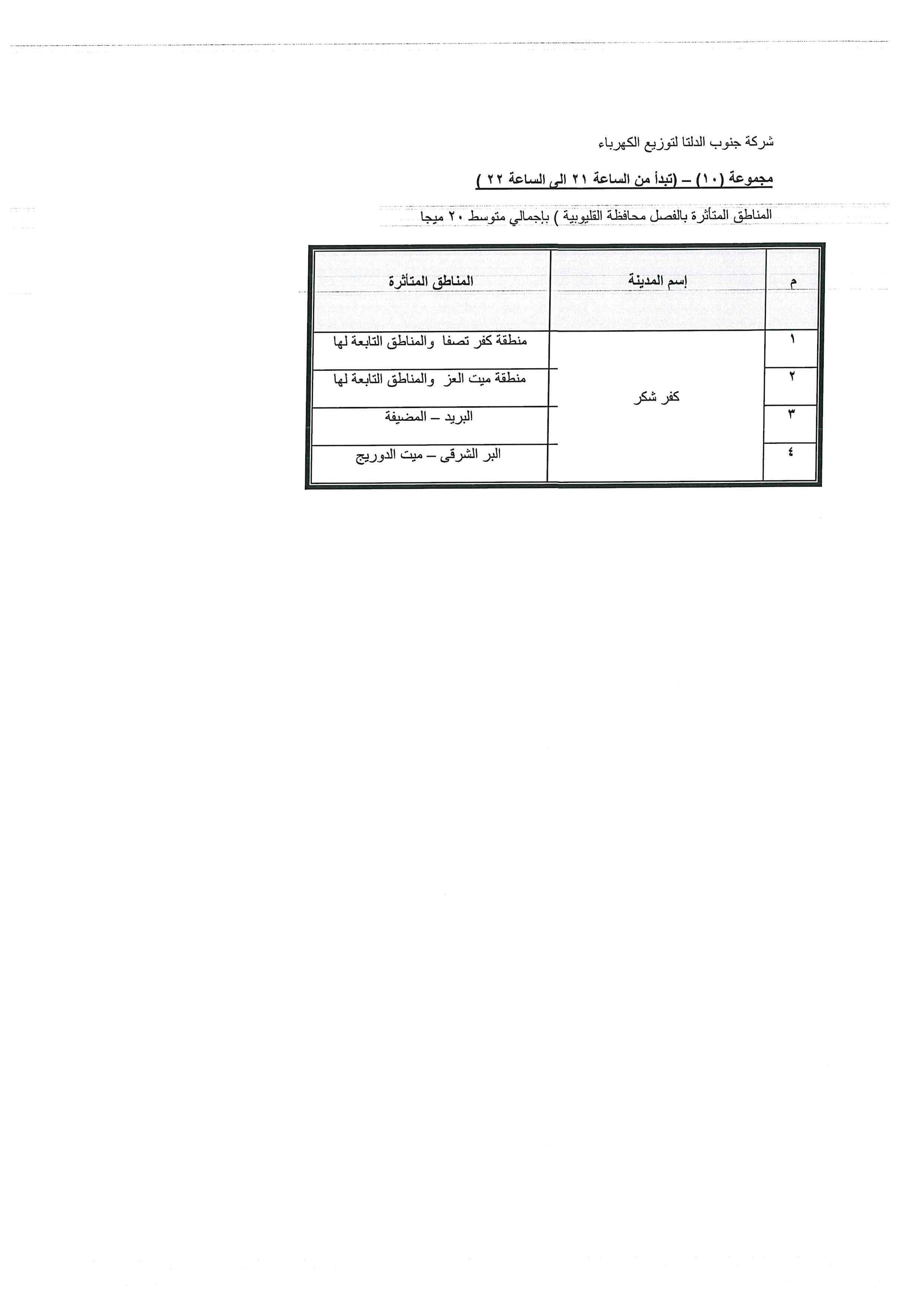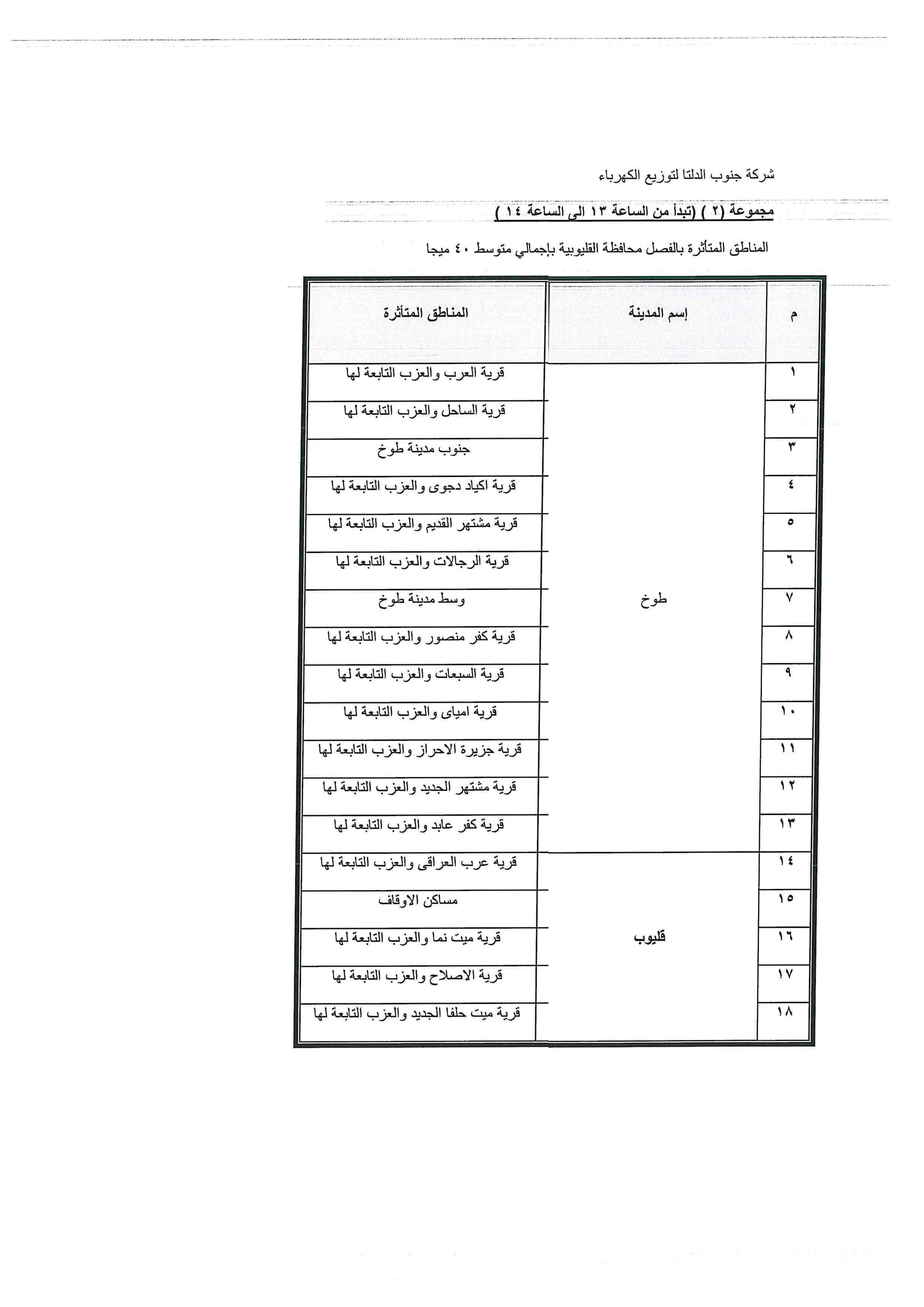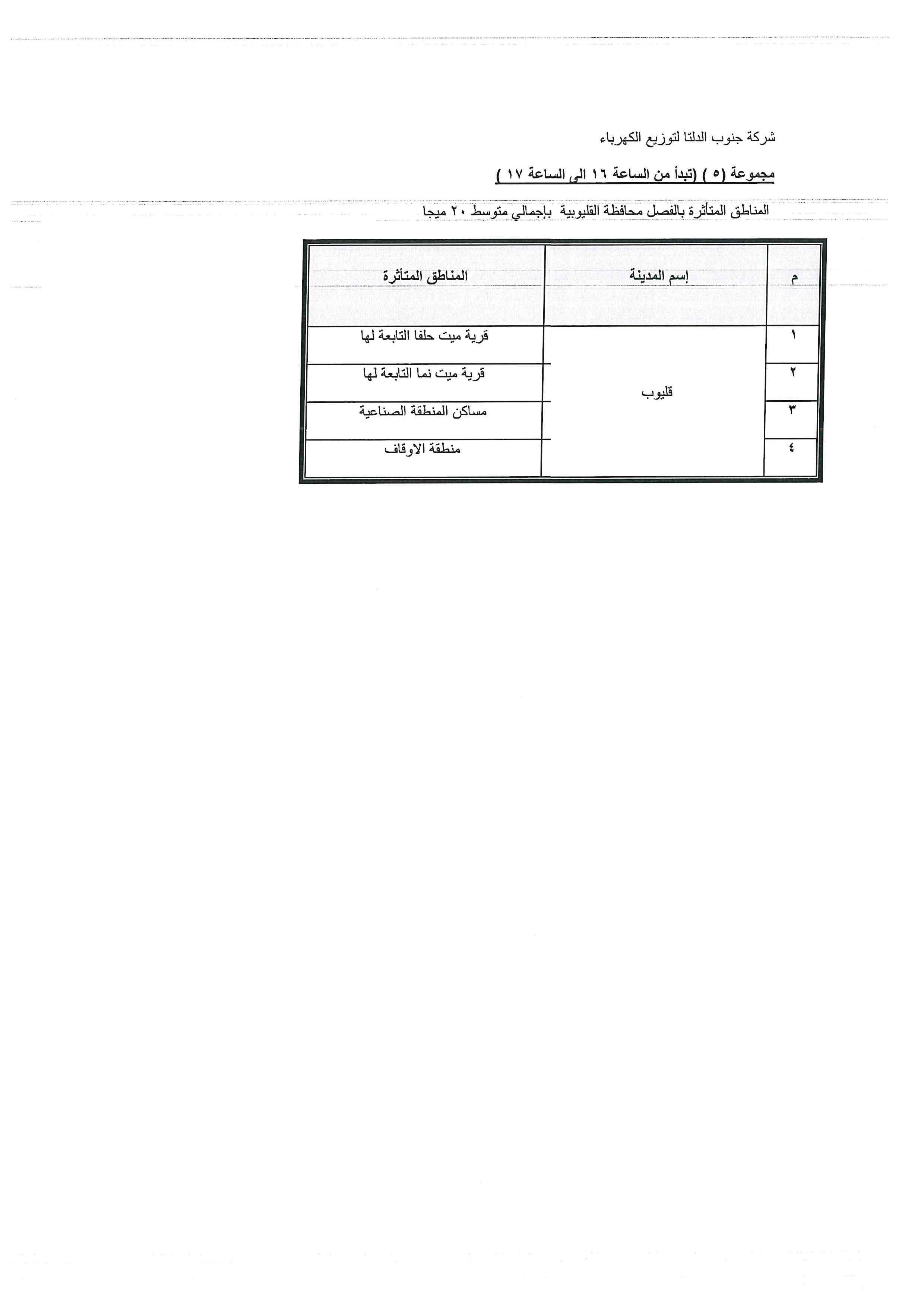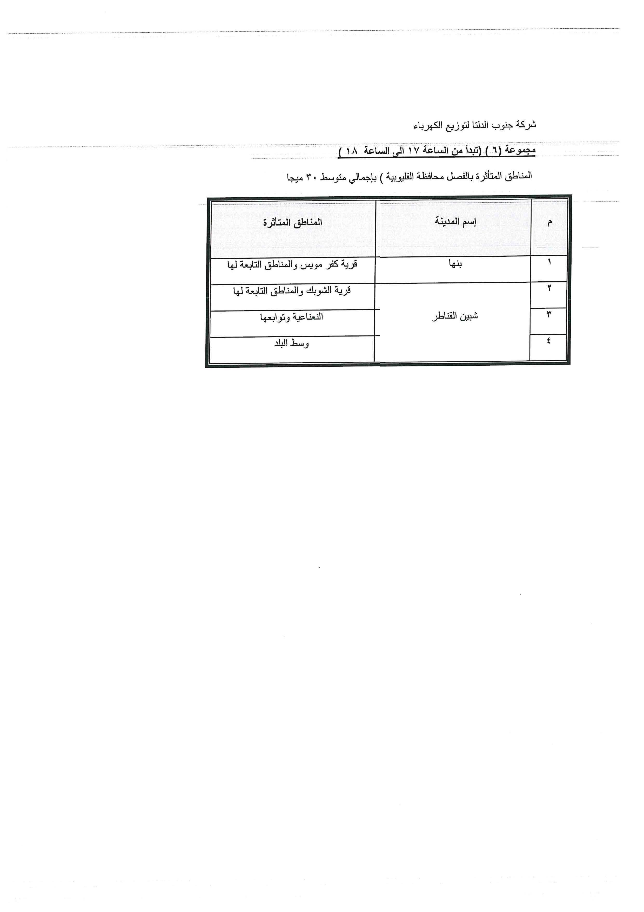 مواعيد فصل الكهرباء عن قري ومدن محافظة القليوبية