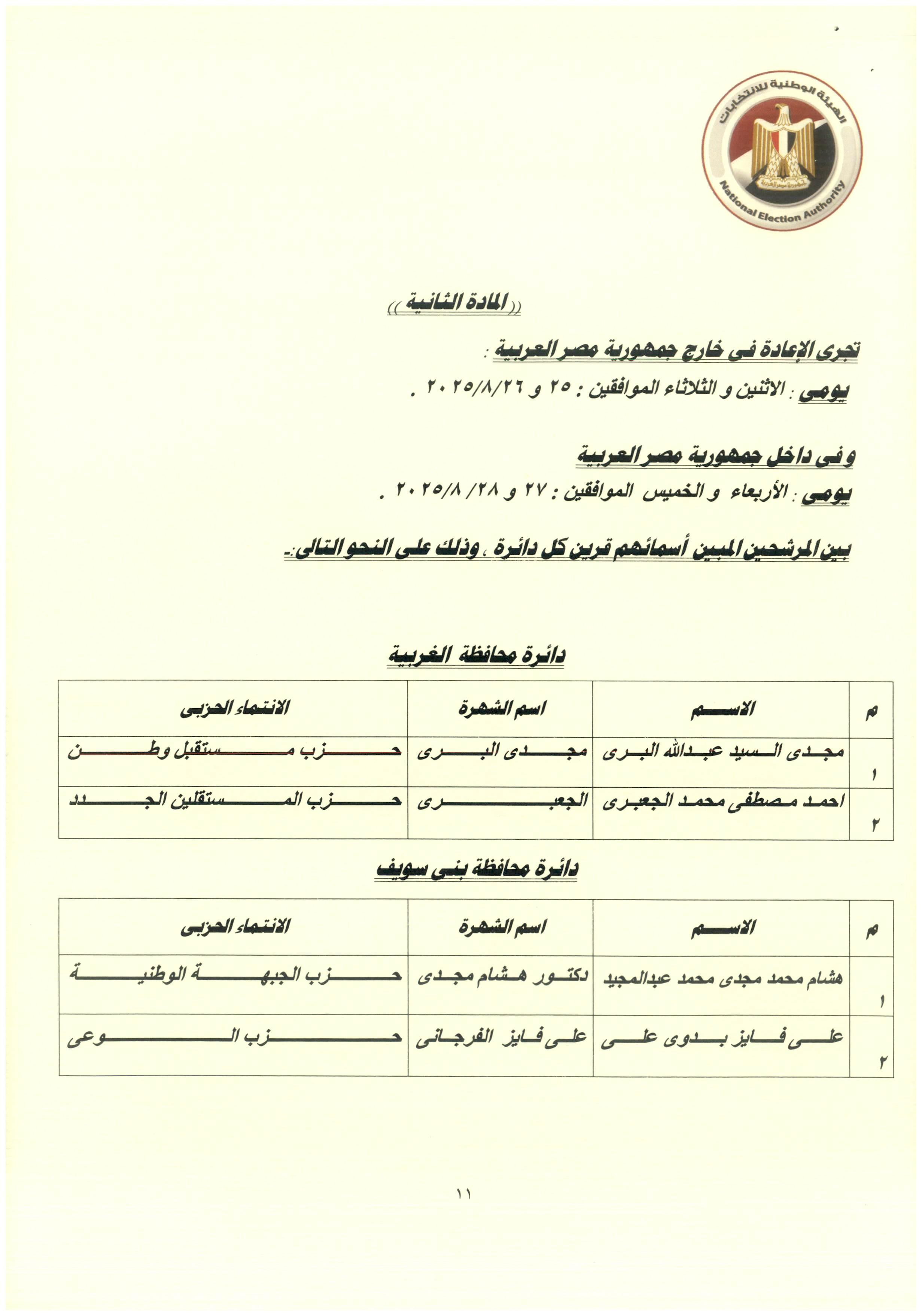 القائمة الكاملة لأسماء أعضاء مجلس الشيوخ الفائزين في انتخابات 2025