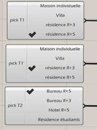 13 Figure 92 méthode de construction du profile courbé expliquée par Al Kashy Source : Dinçer et Yazar ............................................................................................................................................................... 97 Figure 93 Vue d'ensemble du flux de travail de la modélisation par éléments. Source : Dinçer et Yazar ............................................................................................................................................................... 98 Figure 94 Vue d'ensemble du flux de travail de la modélisation basée sur les tessellations Source : Dinçer et Yazar 99 Figure 95 Vue d'ensemble du flux de travail de la modélisation basée sur les blocs. Source : Dinçer et Yazar .................................................................................................................................................... 100 Figure 96 Variations générées par le flux de travail de la modélisation par éléments. Source : Dinçer et Yazar 101 Figure 97 Interface d’utilisateur de Rhino 3D. Source : logiciel Rhino 3D 104 Figure 98 Interface d’utilisateur de Grasshopper et Rhino 3d. Source : logiciel Rhino 3D................. 105 Figure 99 Génération du réseau de rues par étapes - chaque étape est une couche supplémentaire dans l'arbre d'instructions correspondant. Source : Decodingspaces.com 107 Figure 100 La modification de la position de la rue de liaison met à jour le réseau de rues. Source : Decodingspaces.com........................................................................................................................... 107 Figure 101 Combinaison de la génération de réseaux de parcelles et de rues. Source : Decodingspaces.com 108 Figure 102 Génération de variantes de parcelles par différentes largeurs minimales de parcelles Source : Decodingspaces.com 108 Figure 103 Composants d’analyse de visibilité. Source : Decodingspaces.com.................................. 109 Figure 104 Logo du plug-in Elk. Source : Food4rhino.com.................................................................. 109 Figure 105 Exemples de motifs en étoile construits à l'aide de la méthode de Hankin.Source : Study of the Control of Geometric Pattern UsingDigital Algorithm (with Focus on Analysis and Application of the Islamic Star Pattern) Jin-Young Lee, Sung-Wook Kim, and You-Chang Jeon 112 Figure 106 Jeu avec Parakeet, différents paramètres et différents résultats.Source : Food4rhino.com 113 Figure 107 Gradient de motifs islamique, Source : Chaine Youtube de Junichiro Horikawa. 114 Figure 108 Le motif de Zellige traduit en mur/sculpture grâce à des briques modulées de façon paramétrique. Source : Auteur............................................................................................................ 115 Figure 109 Canvas Grasshopper du mur. Source : Auteur .................................................................. 116 Figure 110 Motif utilisé. Source : Auteur ............................................................................................ 116 Figure 111 Mur en 2d Source : Auteur 117 Figure 112 Mur en 2d et 3D Source : Auteur 117 Figure 113 Façade et plan du mur. Source : Auteur............................................................................ 118 Figure 114 Différents types d’attracteurs : point, ligne, et courbe Spline. Source : Auteur............... 119 Figure 115 Le plug in Pufferfish offre un composant « round to nearest » qui limite les chiffres Source : Auteur 120 Figure 116 Grâce à la composante « 3d text » de Grasshopper, il est possible d’énumerer les briques avec leurs angles de rotations, pour simplifier le processus de construction encore de plus. Source : Auteur.................................................................................................................................................. 120 Figure 117 Lien archicad-Grasshopper, et traduction d’une géométrie en éléments BIM sur l’interface du programme Archicad. Source : Archicad.com 122
