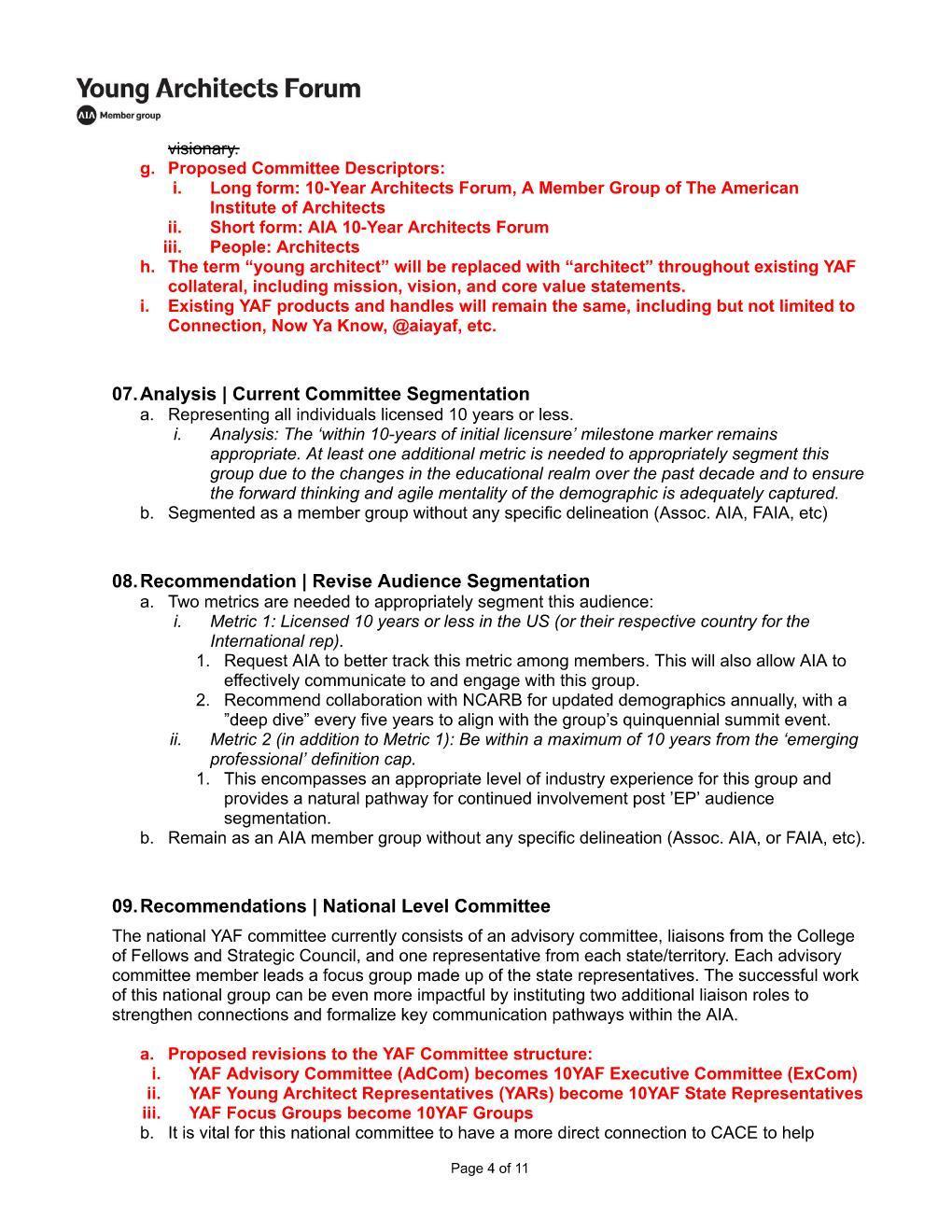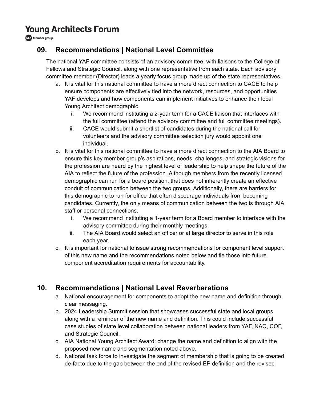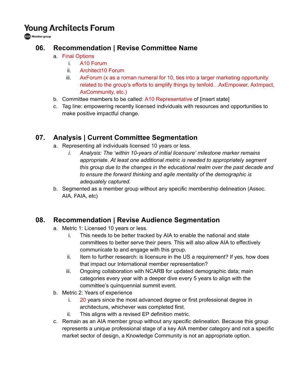 "10-Year Architects Forum" pitched as new proposed committee name.