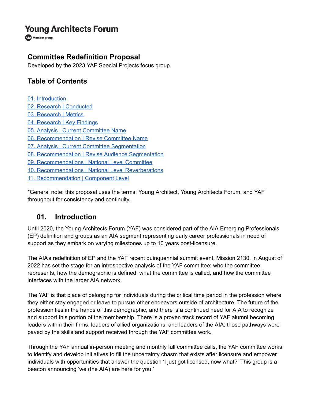 Studying past research completed by the committee in regards to its name (dating back to 2014). NCARB data and YAF demographic information were also reviewed.