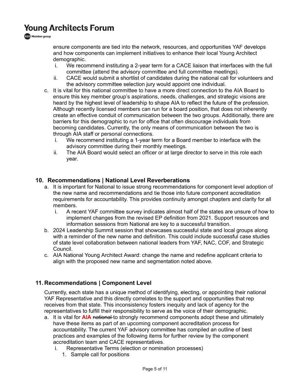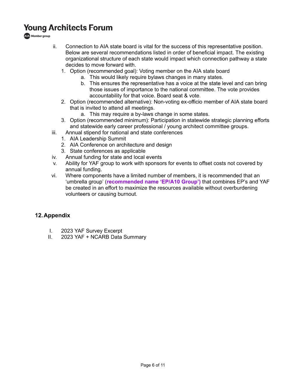 • YAF presence in AIA Bylaws