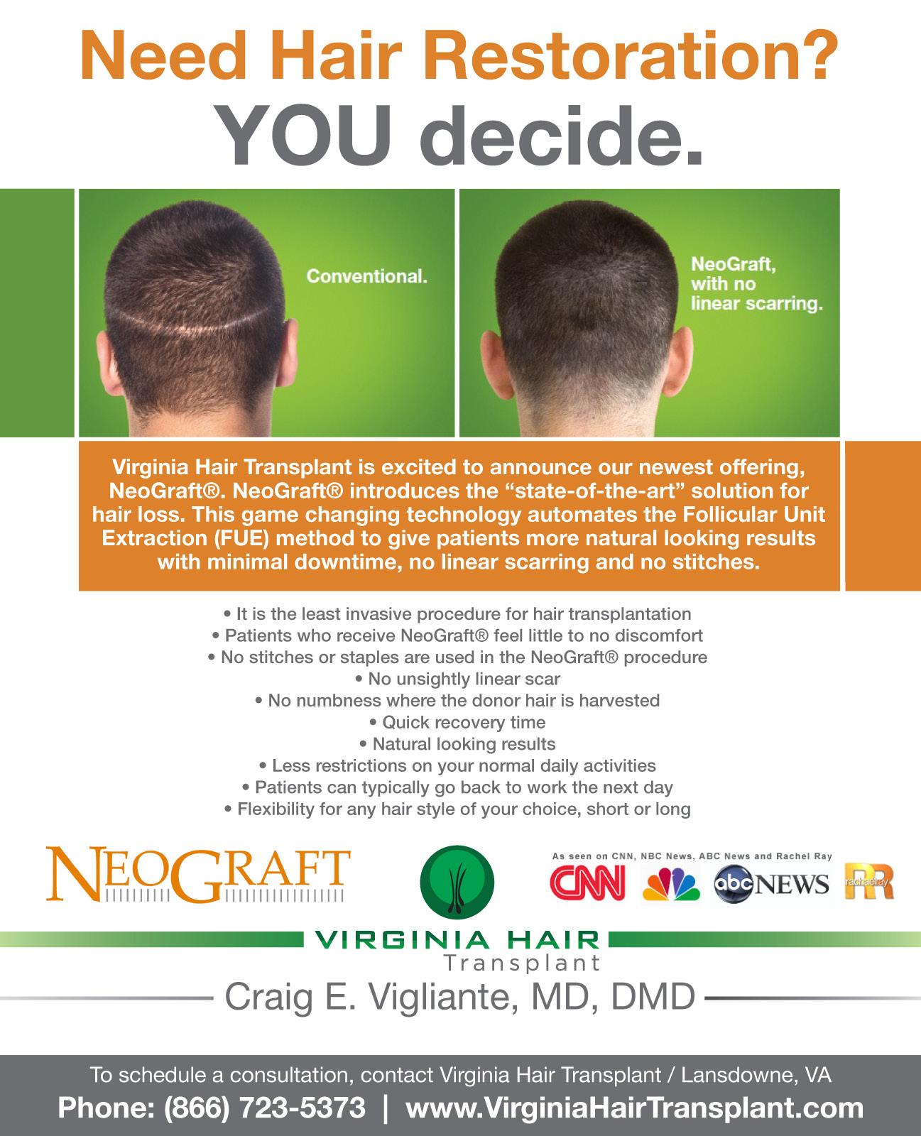 By Craig E. Vigliante, MD, DMD Virginia Hair Transplant, Lansdowne