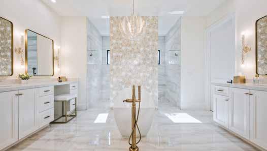 “As far as the design direction, the owners wanted light, neutral colors, natural materials for the furniture and lighting, and a color palette that consisted of tans and light browns with black introduced as an accent, specifically with the appliances,” Brady points out. The designer’s main goal was to create a warm, inviting light, natural feel that family and guests could feel when they walked into the home. “If you think about how interior design is currently trending, it starts on the West Coast and moves to the East Coast—so the home has a transitional, coastal, California feel,” Brady expresses. “The colors and textures that we used are really beautiful.”
