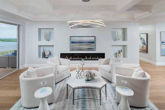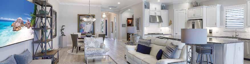 The estate was originally slated to be a model home, but the homeowners bought it at an early phase of construction, and trusted Ruta Menaghlazi, Vice President of Design at Theory Design, a Seagate Development Group company in Estero, to personalize it to their liking. “We were brought in from day one by the owners to make the residence more comfortable when entertaining,” explains Menaghlazi. “They liked neutral earth-tones, so that was a driving force as we chose the palette.” The home lends itself to a more modern feel with a bit of industrial flair to it. Two of the more challenging aspects of the design process, Menaghlazi points out, was the fact that the home is located in a neighborhood with a lot of new construction, so the traffic was congested and, thanks to supply chain issues with the cabinetry, furniture, and lighting, her team had to work with tight deadlines. Even so, they stayed on schedule. While Menaghlazi loves the entire project, the main living area is special to her. “The open plan is always my favorite. I’m a big fan of the soffit and cove ceilings, and LED strip lighting.”