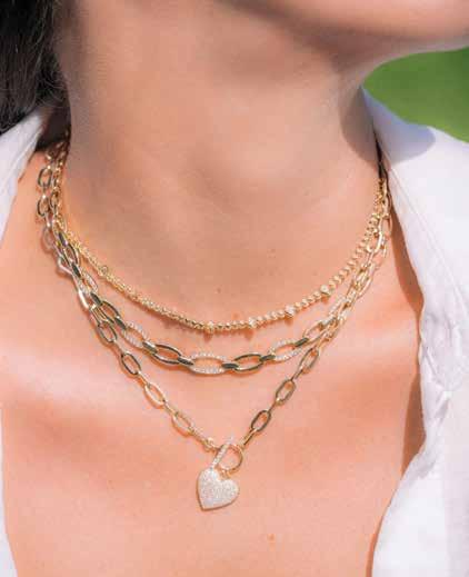 Rather than uniform repetition, modern layering embraces contrast. Delicate chains are worn alongside heavier links. Diamond-set strands are offset with plain gold. The goal is not abundance, but balance. Each piece has a role, contributing to a cohesive visual story rather than competing for attention.
