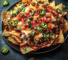 5. Scatter tomatoes, avocado, red onion, jalapeño slices, and cilantro over the hot nachos. Serve with lime wedges and desired extras.