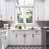 Creamy Bianco Dolomite marble, quarried in Italy, sets the tone for the classic primary bath. The marble continues into the expansive shower, constructed with frameless glass panels, a mosaic floor, and a multi-head thermostatic system by Moen. This system offers vertical body jets, handheld sprayers, and multiple control valves for a customized spa experience. A floating bench of rough-cut marble offers seating in front of an onyx backlit panel. The room features two separate water closets (one with a bidet) and an entrance to a private balcony.