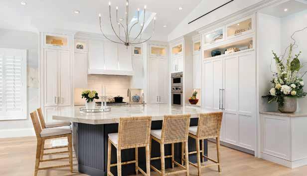 “I was able to help the owner with the form and function, all the details of the house that helped push the boundaries of the usual coastal casual beach residence and define the home as truly special. I worked with residential designer Rich Guzman even through the initial planning, so my ideas influenced the architecture, particularly in the ceiling and window details and the impactful grand staircase, with its visible supports and industrial edge. It was wonderful to be able to celebrate the craft of homebuilding throughout the project.”