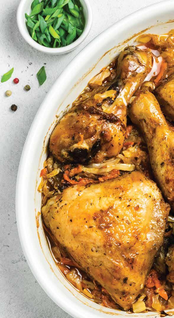 5. Spoon cabbage-carrot mixture onto plates and top with chicken. Garnish with fresh scallions or parsley.