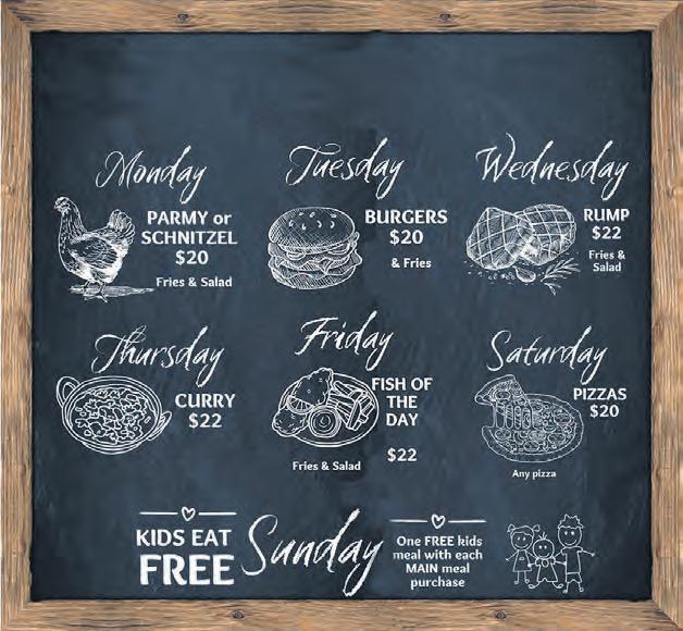 DAILY SPECIALS 7 DAYS - 12-8PM ALL FOOD SPECIALS AVAILABLE FOR DRIVE THRU TAKE-AWAY ORDER ONLINE: cooroyhotel.com.au or PHONE: 5472 1900 Bar - Bistro - Kid’s Room Gaming - Drive Thru / Take-away 38 Maple Street Cooroy THE CUBBY HOUSE KIDS PLAY AREA • Farm Shop • Train Set • Wooden Games $20 SENIOR’S MENU Available 7 Days or Seniors receive 10% OFF the whole menu!