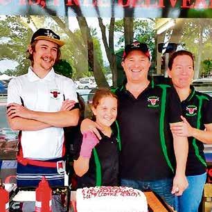 Celebrating their reopening in 2014 with long time employee Mitch Hayley helping her dad