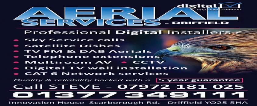 55 01262 340431(Brid) 07828 750859 EST. 25YRS APPLIANCE Services Aerius Installations • TV Aerials • Satellite Dishes • TV Extensions • TV Wall Brackets • Aerial Repairs • CCTV Systems TV AERIAL SPECIALISTS 15% DISCOUNT QUOTE: AER22 ESTABLISHED OVER40YEARS Engineers based in Bridlington & Driffield 0800 8044077 / 07711 796985 Call today on: Advertise here from as little as £43 +VAT call 01904 767881
