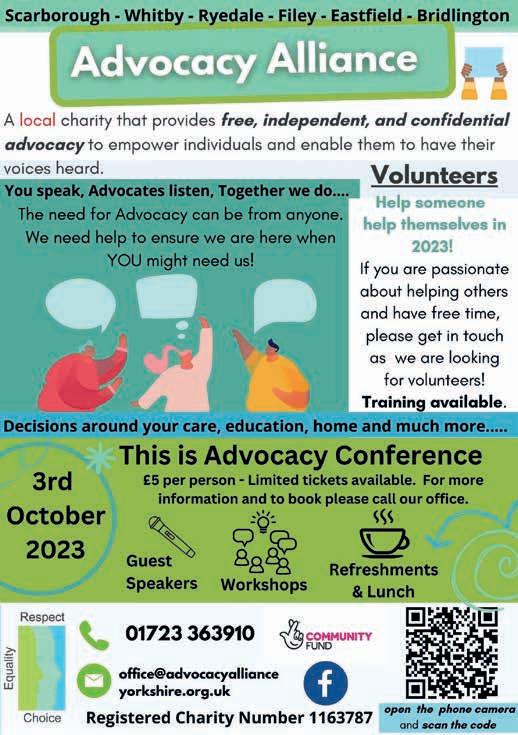 COFFEE MORNING, Wreyfield Methodist Church, YO12 6NP, 10am-noon. Introduce yourself to a community of retired or semi-retired people in the Scarborough area, enjoy a coffee, a cake and a chat. You don’t need to be a member to attend but may want to join up after meeting everyone! £2 entry. Head to www. scarboroughu3a.co.uk for more details about the group.