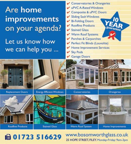 Tyson Heating 57 ML Plumbing Gas & Heating 57 Northern Gas 50 SR Lambert Plumbing Heating 11 REMOVALS/STORAGE Bridlington Removals 51 Clayton J James 6 House & garage Clearances 60 Stephenson Park 54 RENEWABLE ENERGY Peak Power Systems 52 ROOFING Binks Roofing 51 East Coast Roofing and Sons 1 S. Bradley Roofing 59 D Brown Roofing Svs 51 First Choice Roofing 14 MJ Sissons Roofing 56 PRO GRP Roofing 24, 34 Solar Panel Protection 60 Unique Roofing 1 SHOPS/STORES Marcus Anthony Furnishings 28 Picturesque Framing 22 Scoop & Save Bridlington 32 SKIPS/WASTE REMOVAL Clear N Clean 44 Harveys Waste Removals 55 TILE SHOPS Direct Tile & Stone Importers 8 TRAVEL/HOLIDAYS Ace Taxis 3 UPHOLSTERY Ian Watson Upholstery 56 Sonia Elizabeth Soft Furnishing13 WILL WRITING Mount Park Legal 16 WINDOW/DOOR REPAIRS The Window Repair Company15 UPVC Repairs & Fitting Svs 4 Window Doctor 29 WINDOWS/DOORS/ CONS Bosomworth Glass 37 Cloud9 Windows 63 Ellanor Windows 10 Britannia Windows 11 Paul Berriman Windows 55 PJL Windows 59 Taylor Made 9