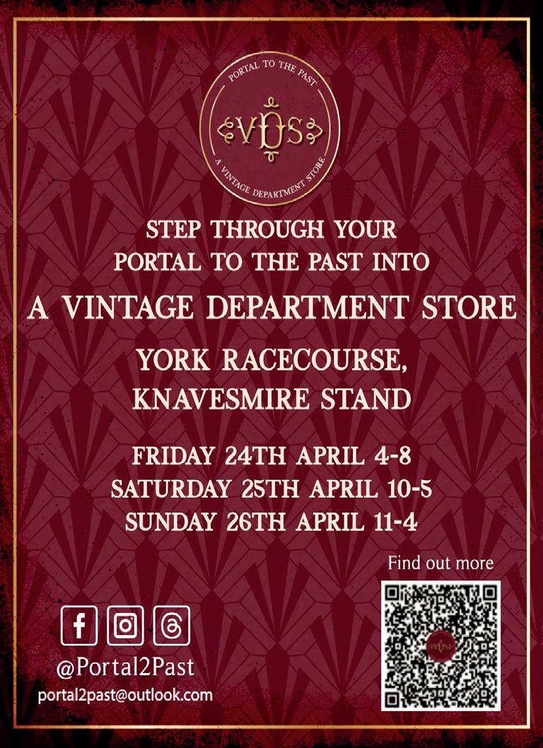 PORTAL TO THE PAST: A VINTAGE DEPARTMENT STORE, Knavesmire Stand, York Racecourse, YO23 1EX. Various times. Visit linktr. ee/Portal2Past? Or email portal2past@outlook.com for further details.