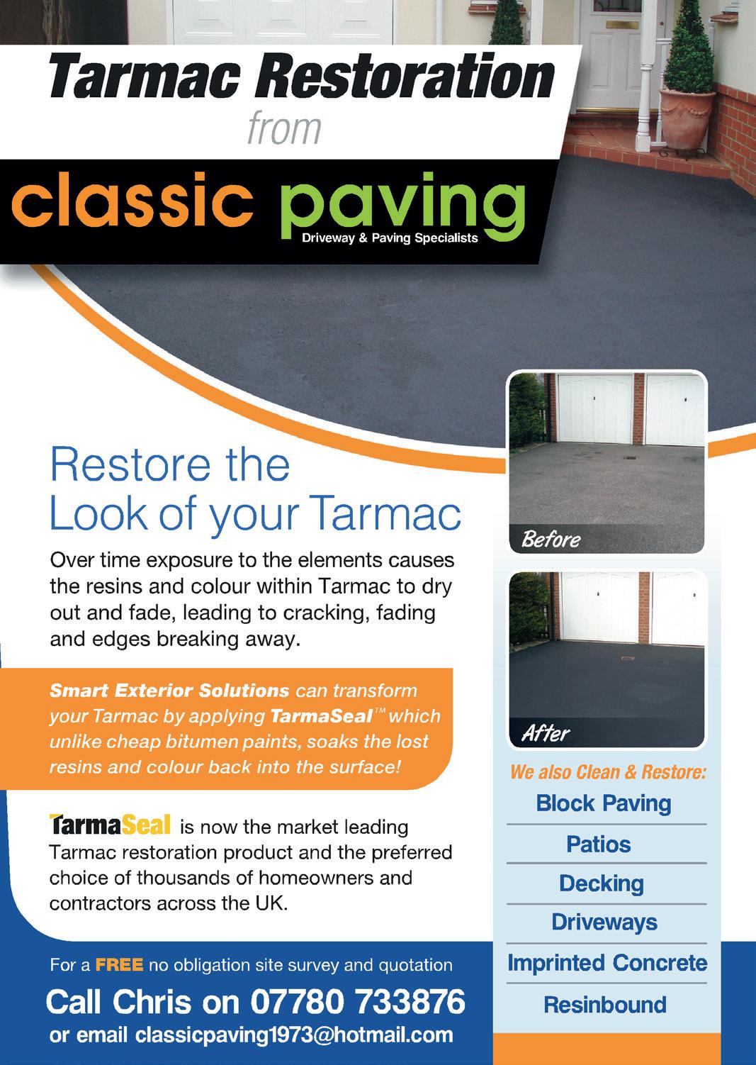 Classic Paving can transform your tarmac by applying TarmaSeal which unlike cheap bitumen paints, soaks the lost resins and colour back into the surface!